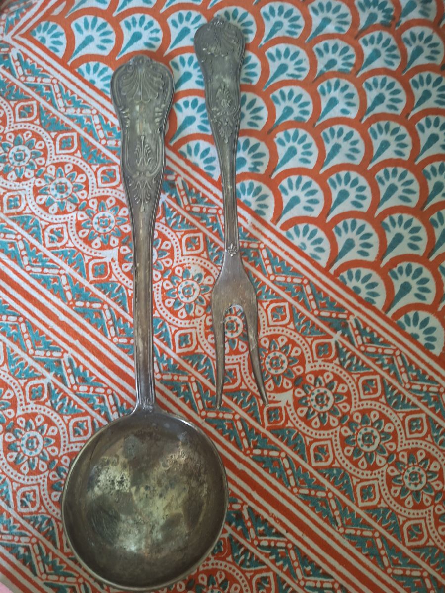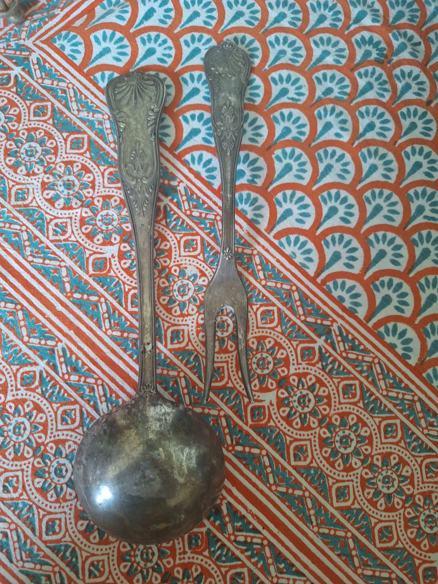Lot de 2 couverts anciens en métal argenté – style coquille vintage