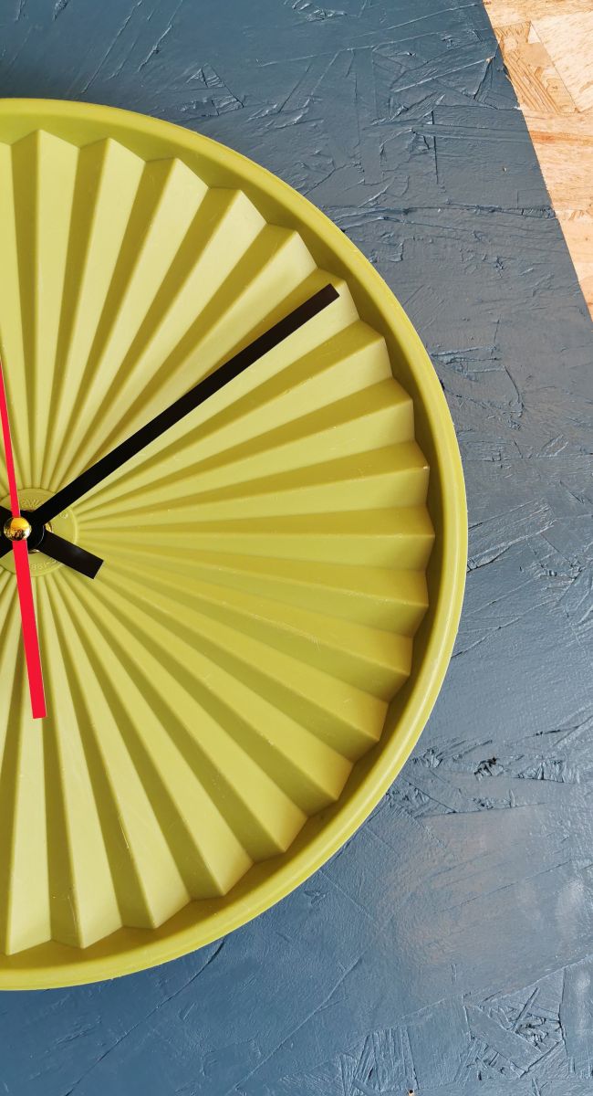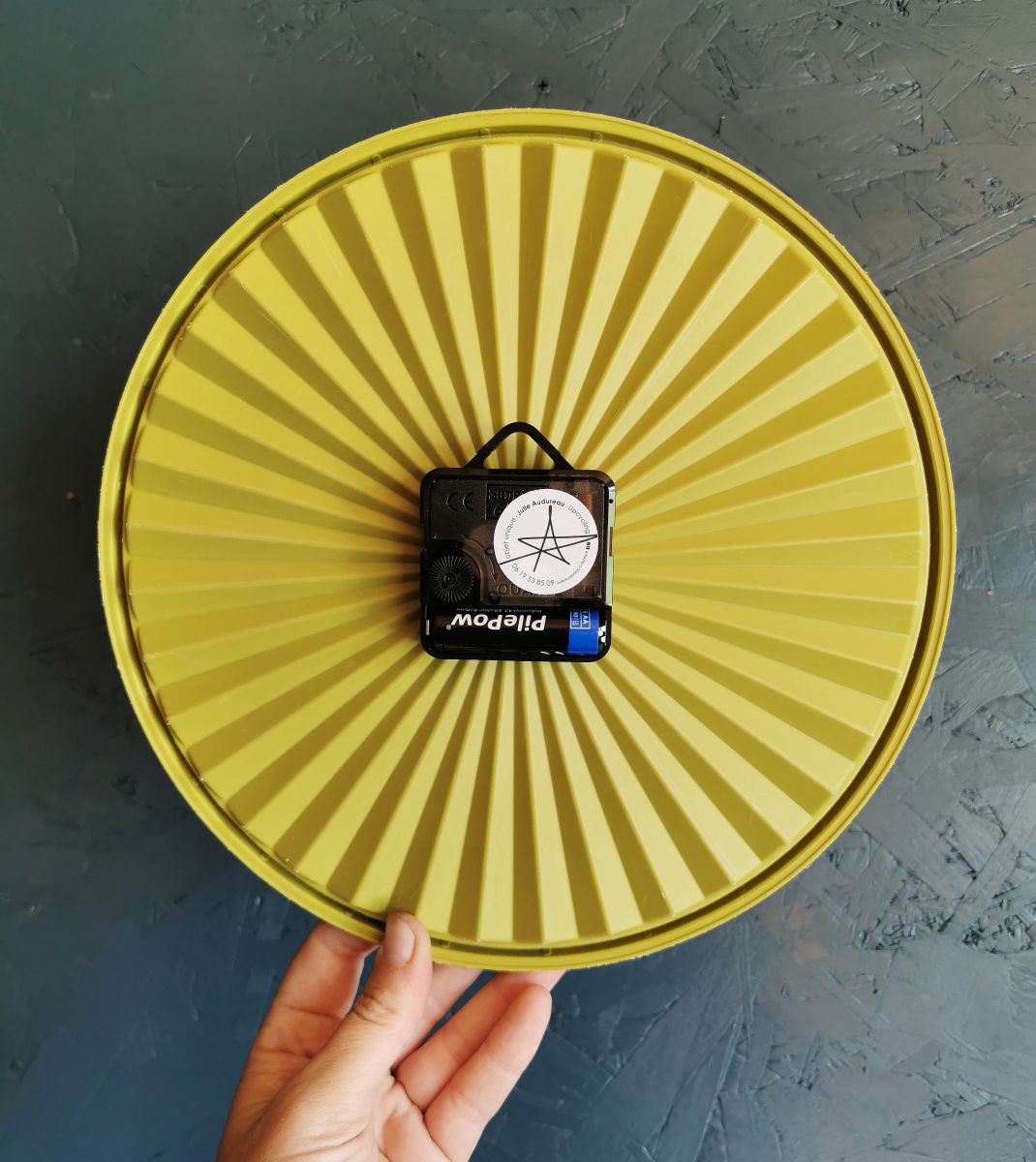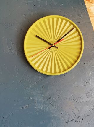 Horloge pendule murale vintage silencieuse couvercle Tupperware Soleil "Vert olive"
