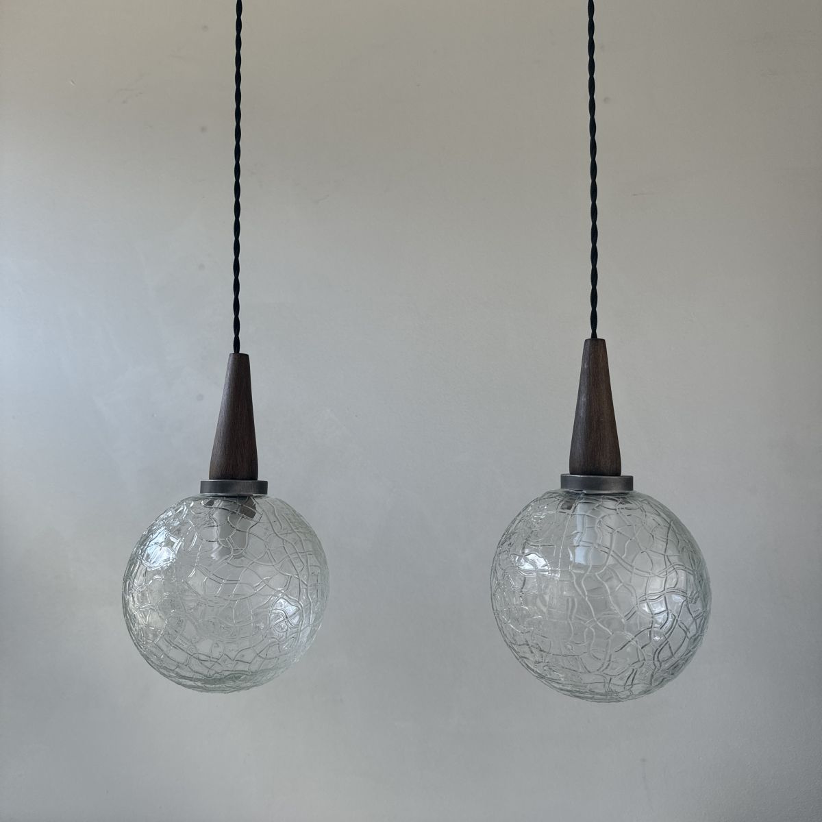 Lot de 2 belles suspensions en verre texturé en très bel état.