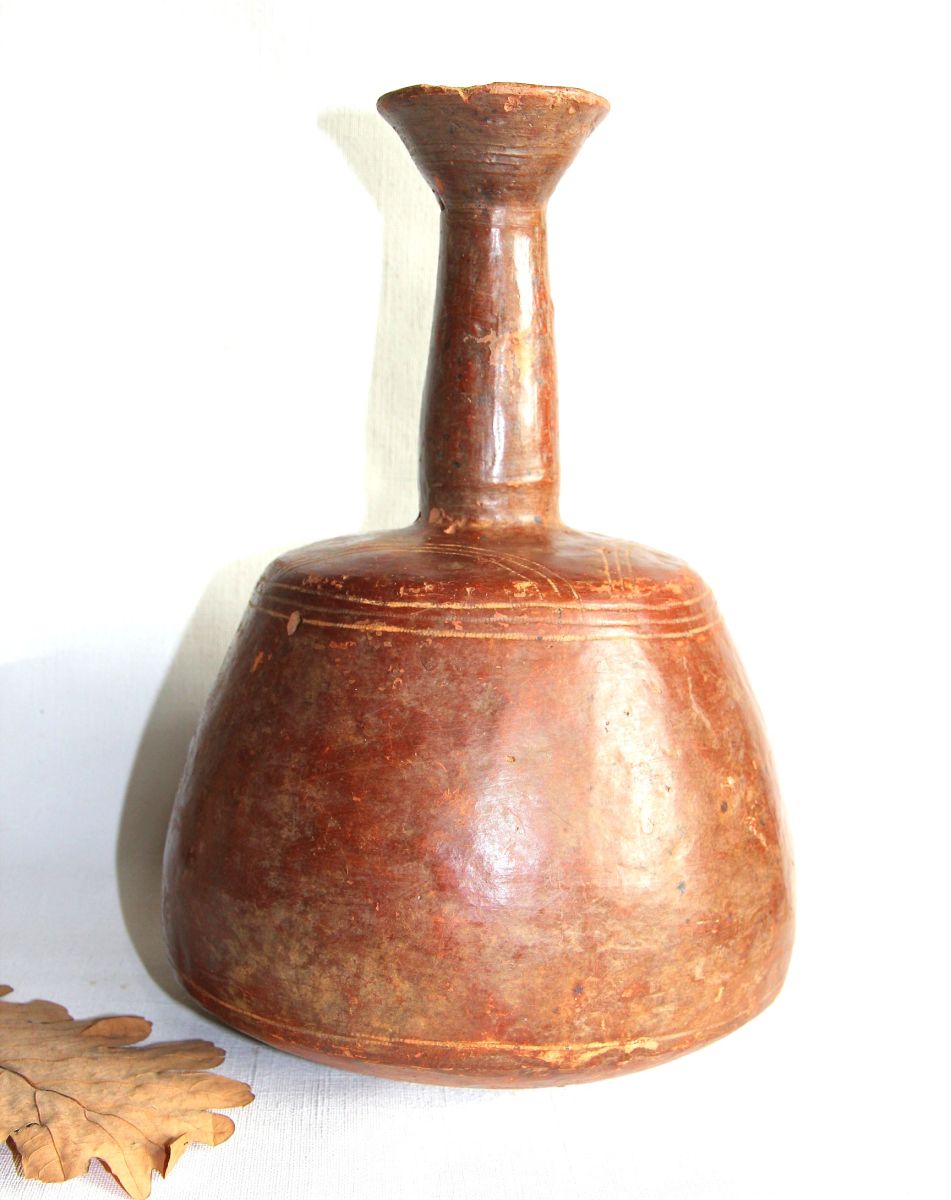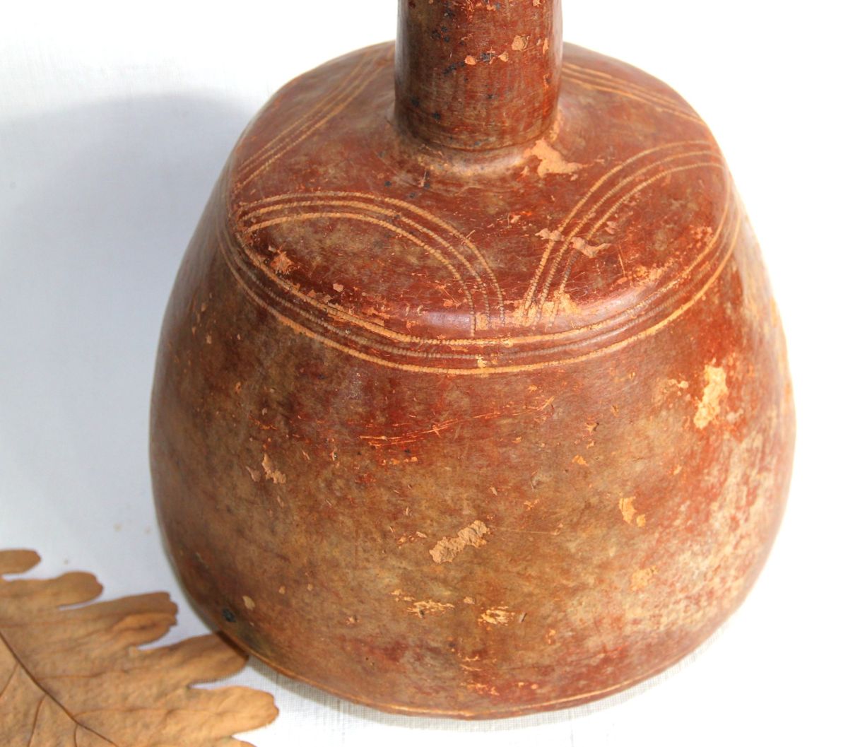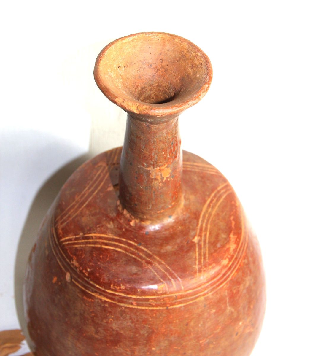 Récipient en terre d'Afrique à long col avec déco géomètriqu
