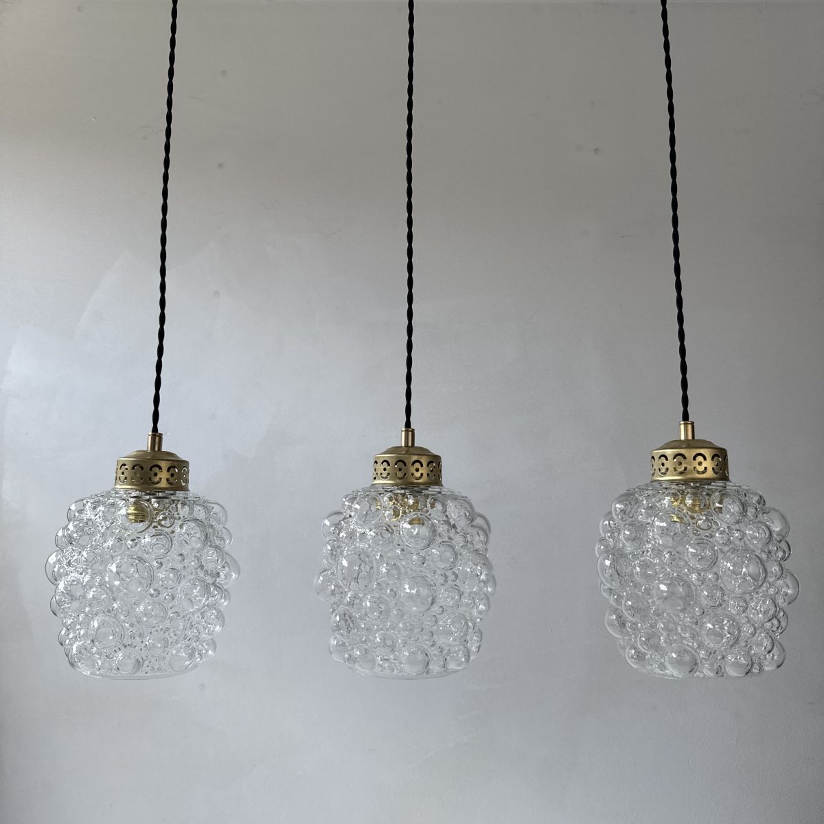 LOT 3 SUSPENSIONS VINTAGE EN VERRE BULLE