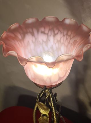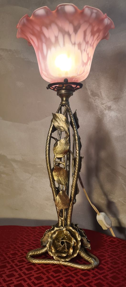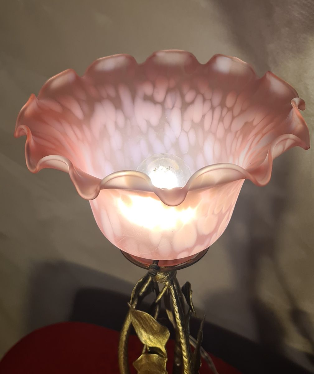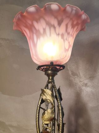 lampe art deco fer forgè 1930 avec tulipe en pate de verre