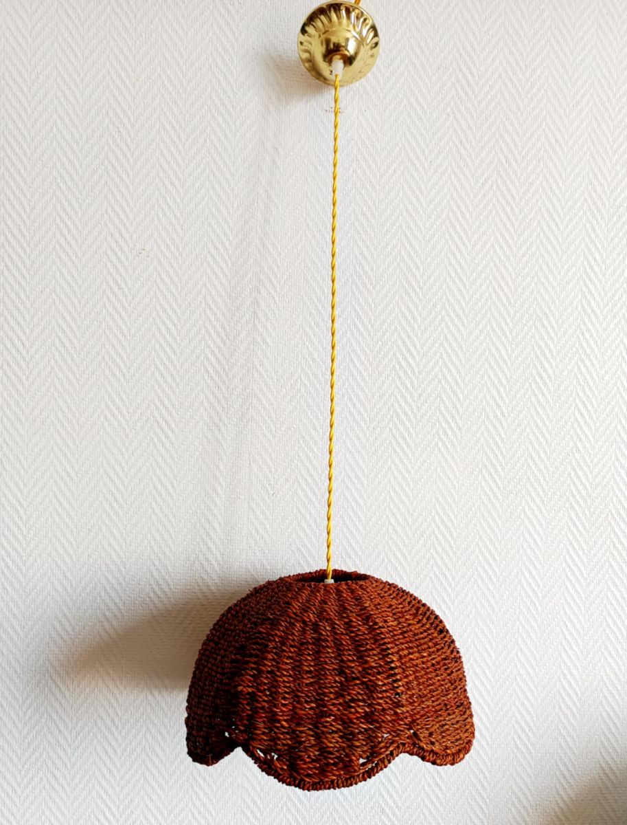 Paire de suspensions en osier montées à l’électricité en forme de fleurs.