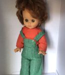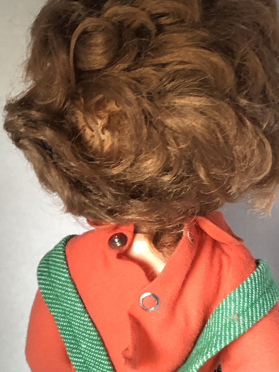 Poupée d'environ 39 cm, yeux dormeurs, années 70, cheveux implantés courts
