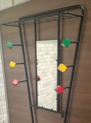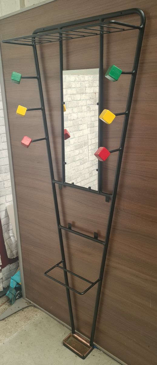 Porte-manteaux mural en métal et bois avec miroir et porte-parapluie 1950, en cocolis merci dorganisé dispo sur auxerre