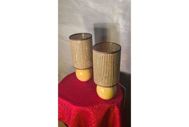 Paire de lampe boule bois massif chevet style scandinave 33x14