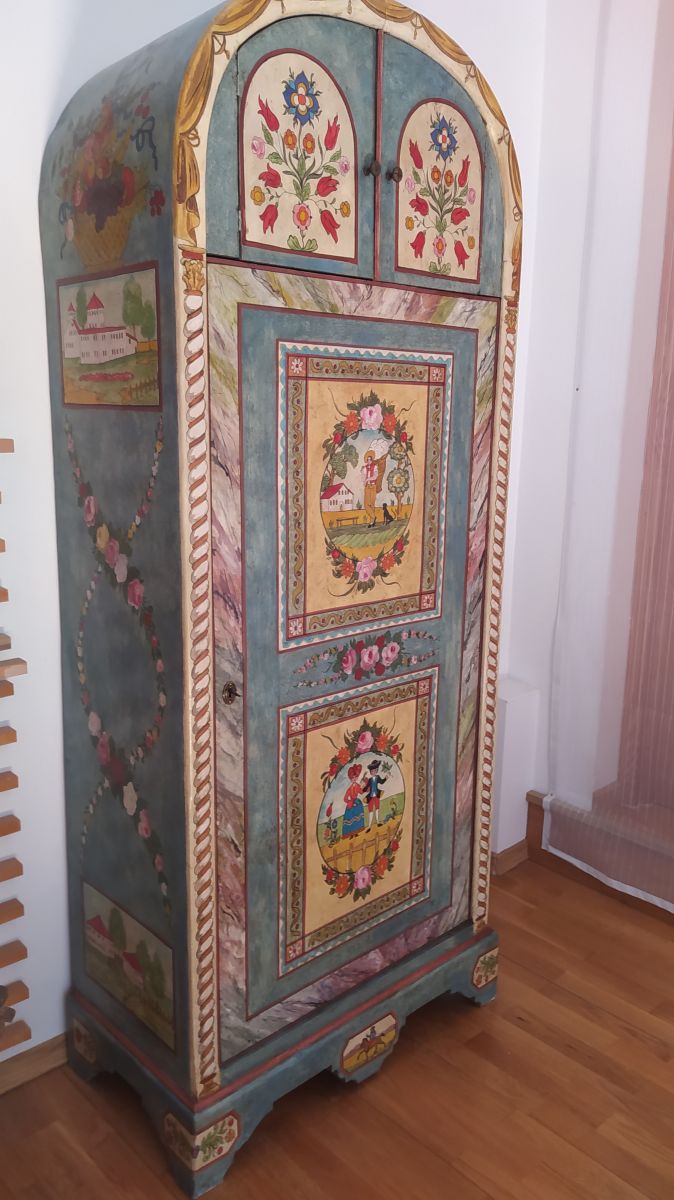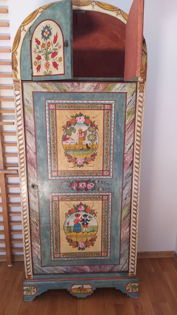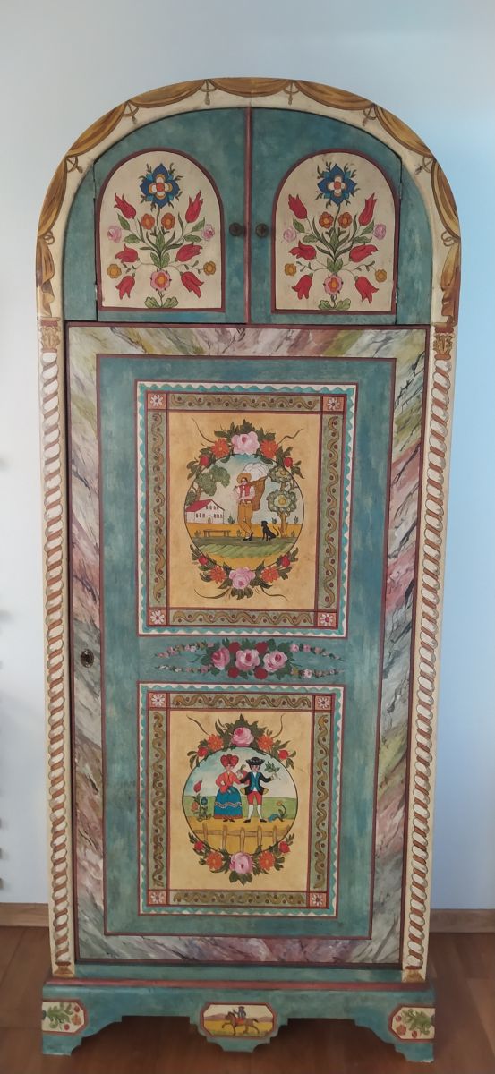 Armoire ancienne, unique par ses proportions, originale, cintrée et très fonctionnelle.