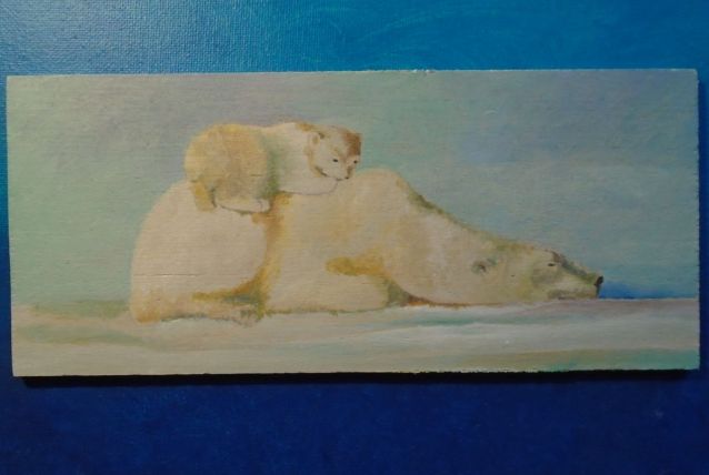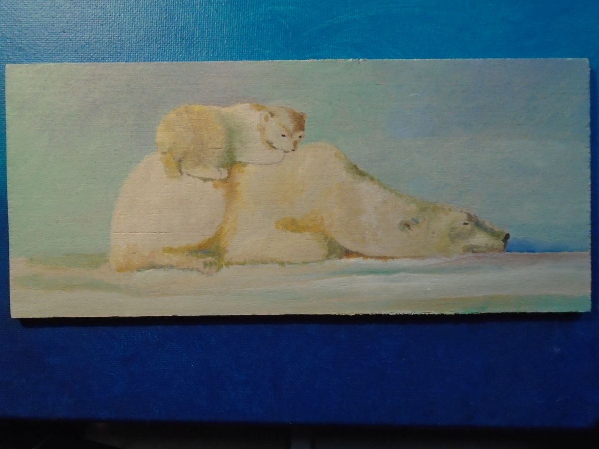 Peinture acrylique sur bois de récup' Maman ours et ourson