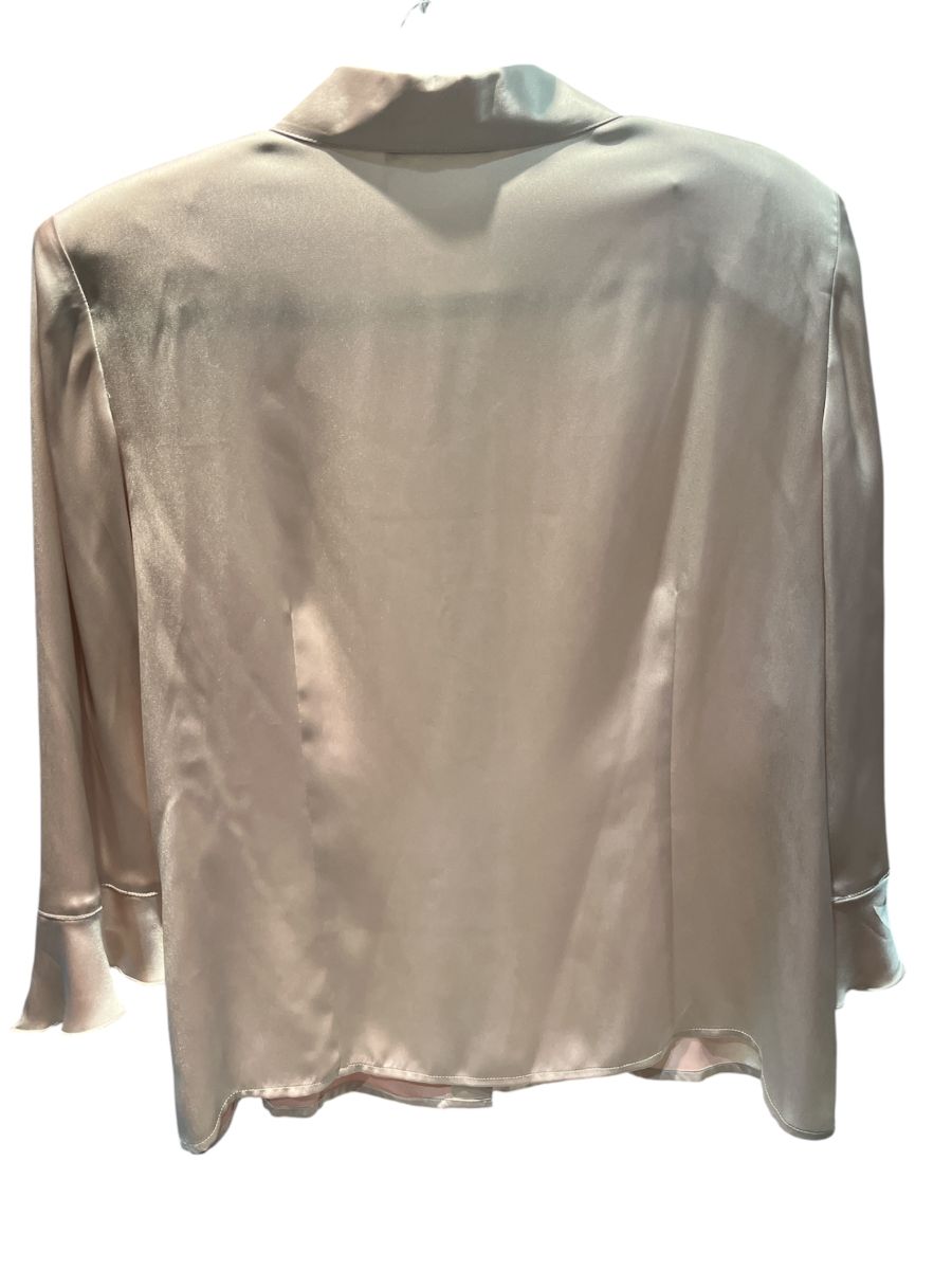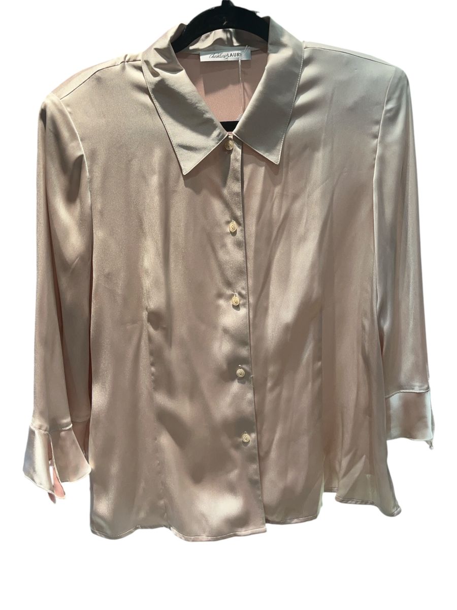 Chemise vintage satinée beige avec des manches trois quart avec des épaulettes
