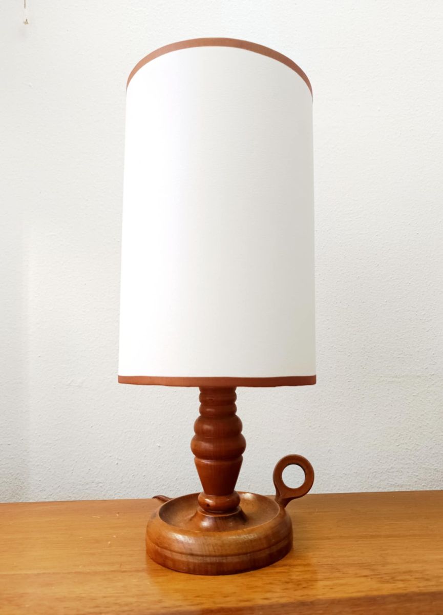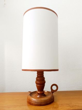 Petite lampe en bois tourné reprenant la forme d’un rat de cave, bois clair type buis.