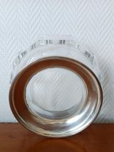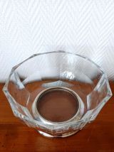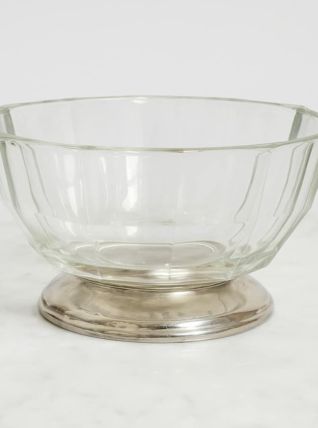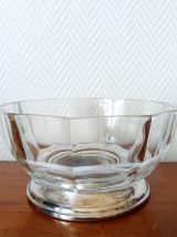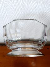 Coupe en verre à pans de dix faces, reposant sur un pied rond en métal argenté.