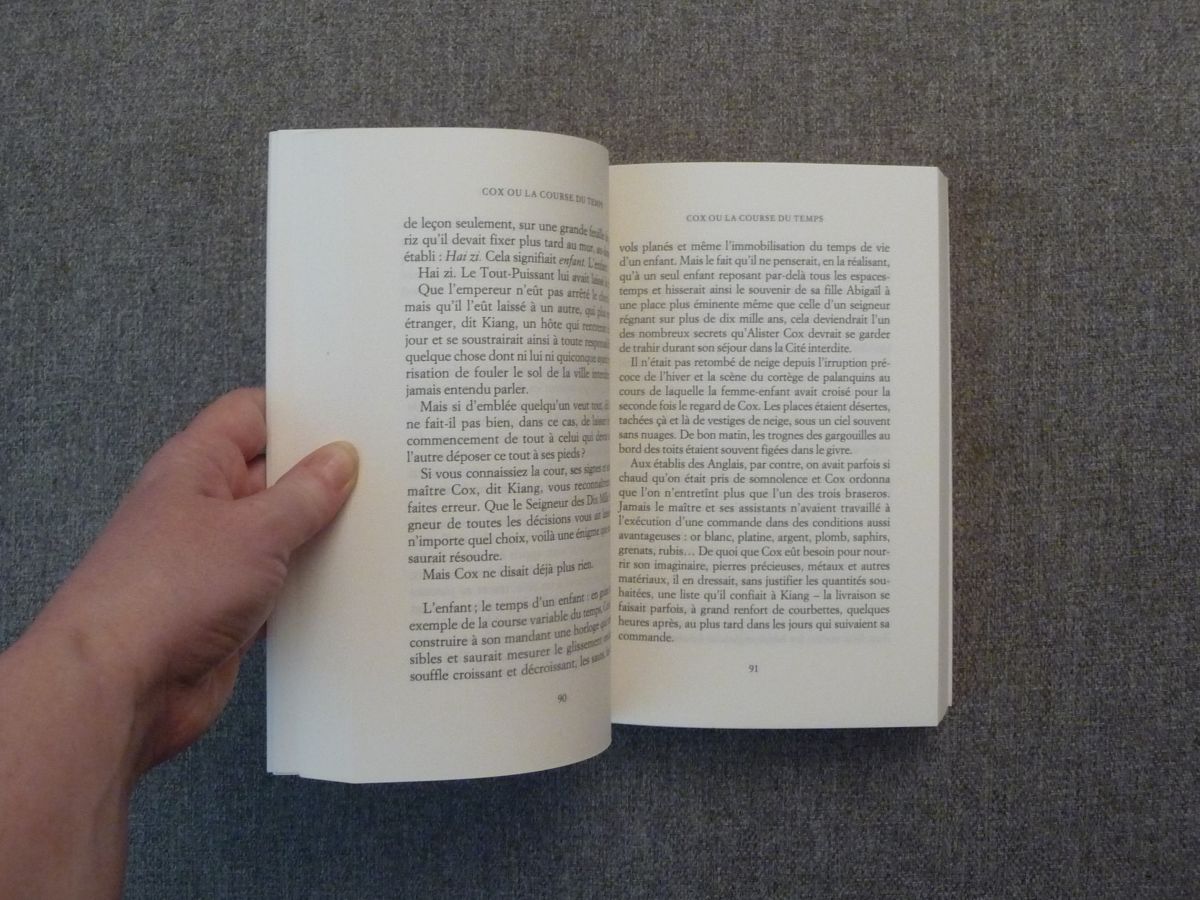 "Comme le temps passe, disait, oui, chuchotait l'empereur au fil de son discours dans la pénombre: mais qu'il rampe, s'arrête, s'envole ou nous subjugue par l'une ou l'autre de ses innombrables variations de vitesse? cela dépend de nous, des instants de notre vie reliés les uns aux autres comme les maillons d'une même chaîne..."