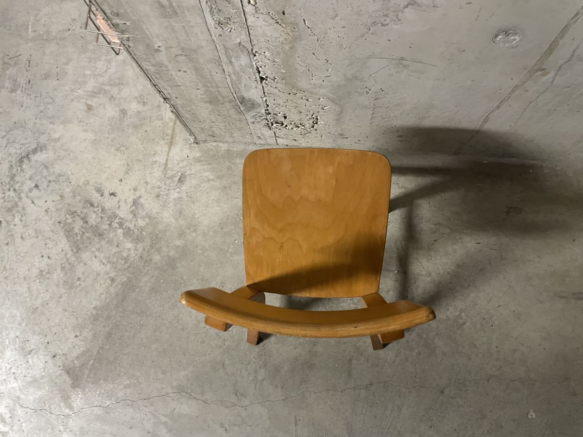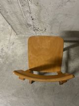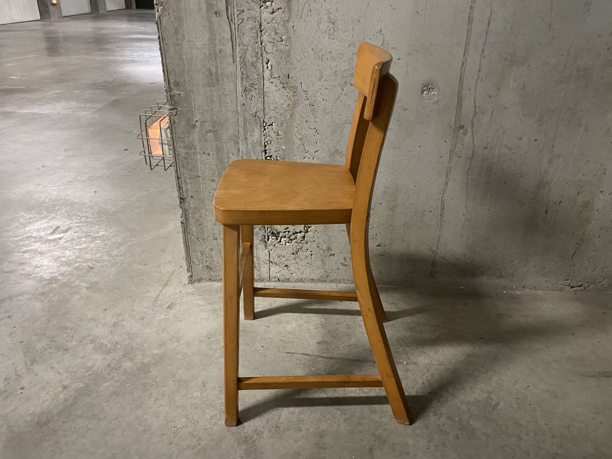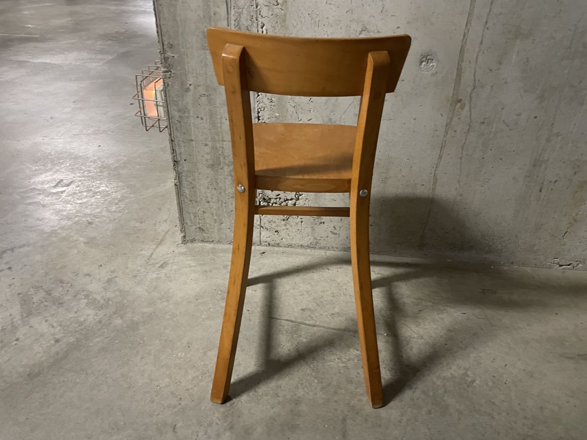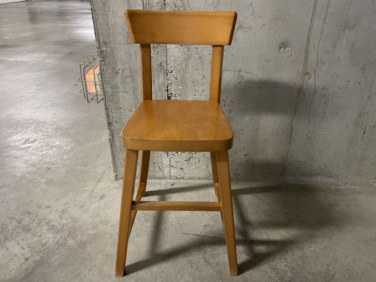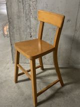 Chaise haute pour enfant en bois blond style Baumann, permet à l’enfant de s’installer à une table d’adulte normale, très belle patine, dimensions (cm) : L.40xH.75xP.42, hauteur assise 50cm, assise 28x28cm, bon état.