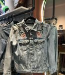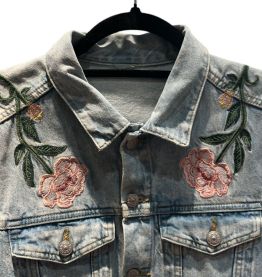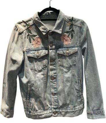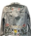 Veste en jean bleu claire brodé avec des fleurs vintage