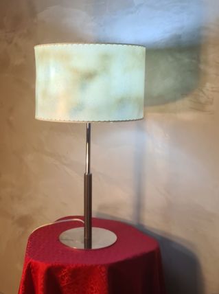 lampe gainé de cuir 1975 a 85 dans le style ADNET Jacques 65x35