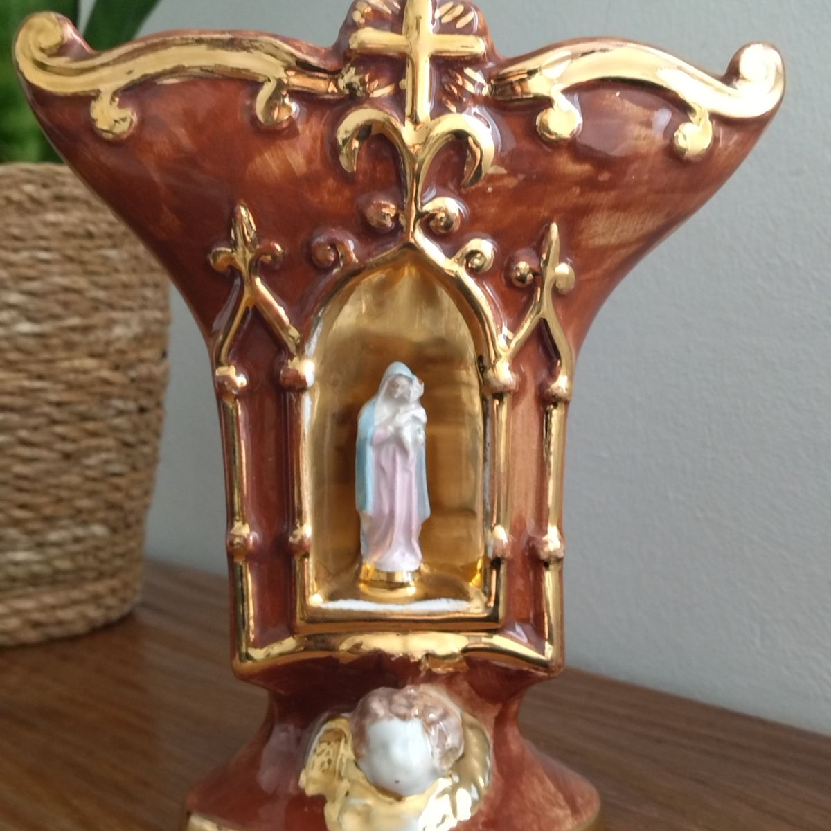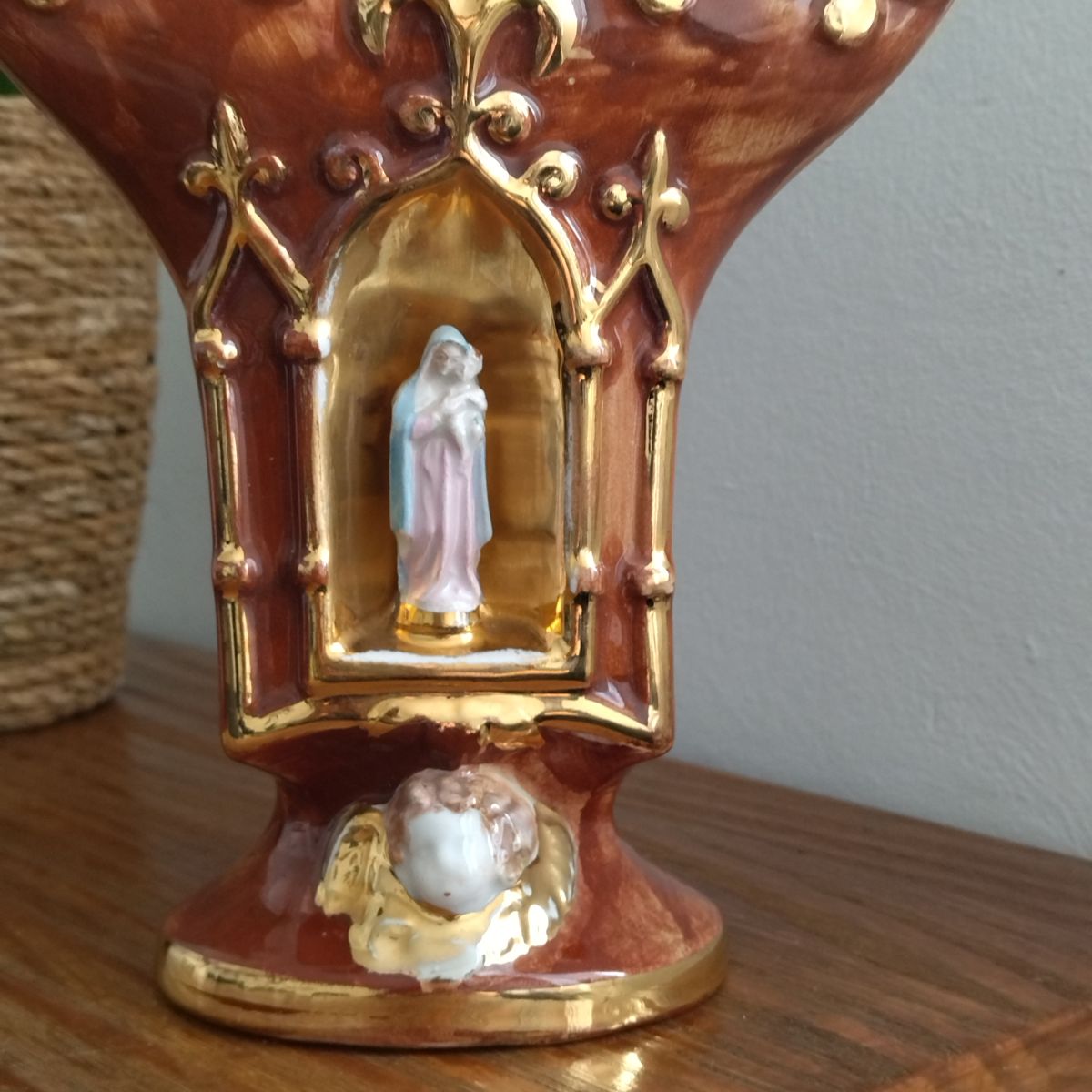 Pièce rare Vase de Mariée en porcelaine avec une petite statuette de Ste Vierge à l'enfant dans une niche .
