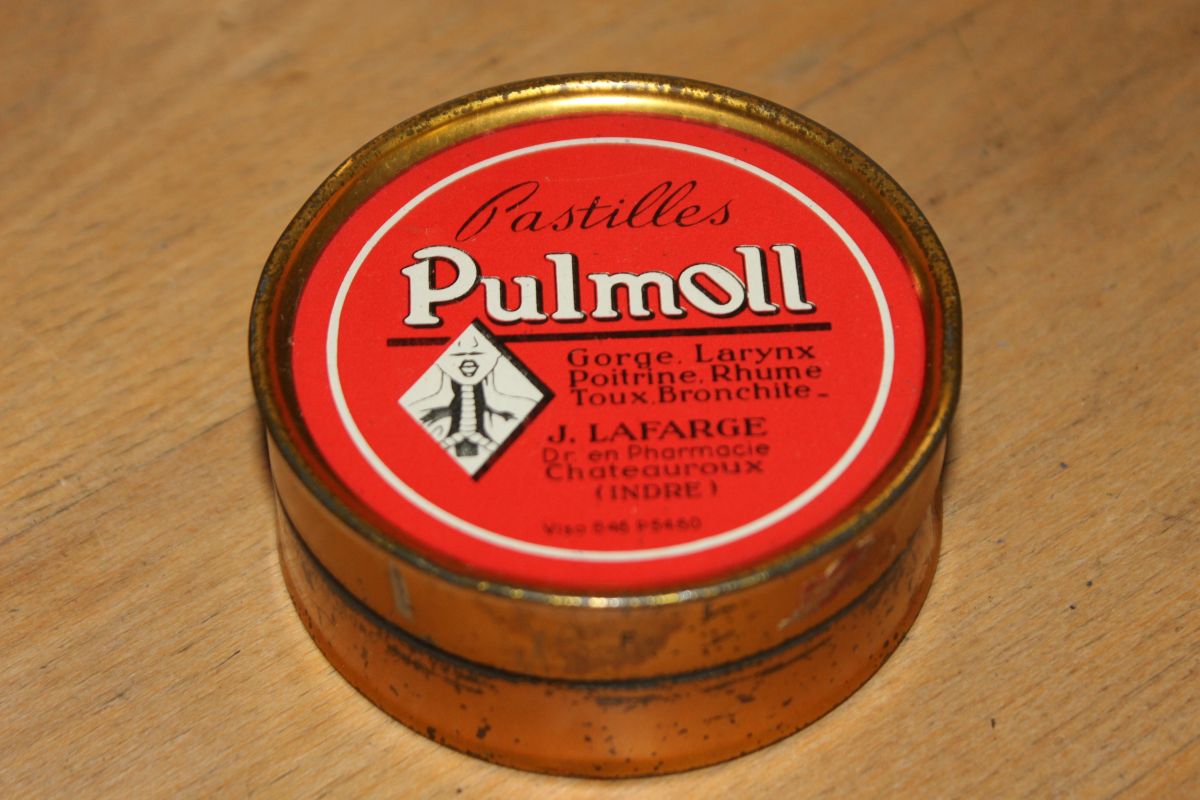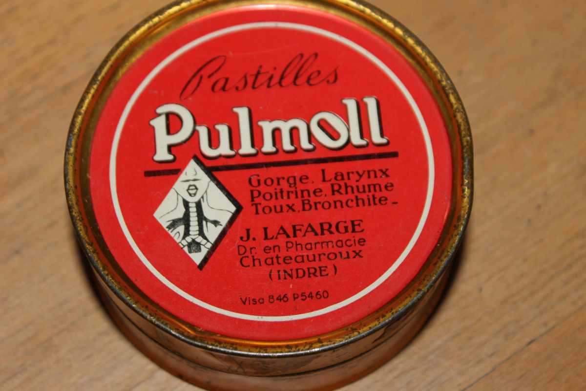 Boite ronde ancienne en fer de pastilles Pulmoll