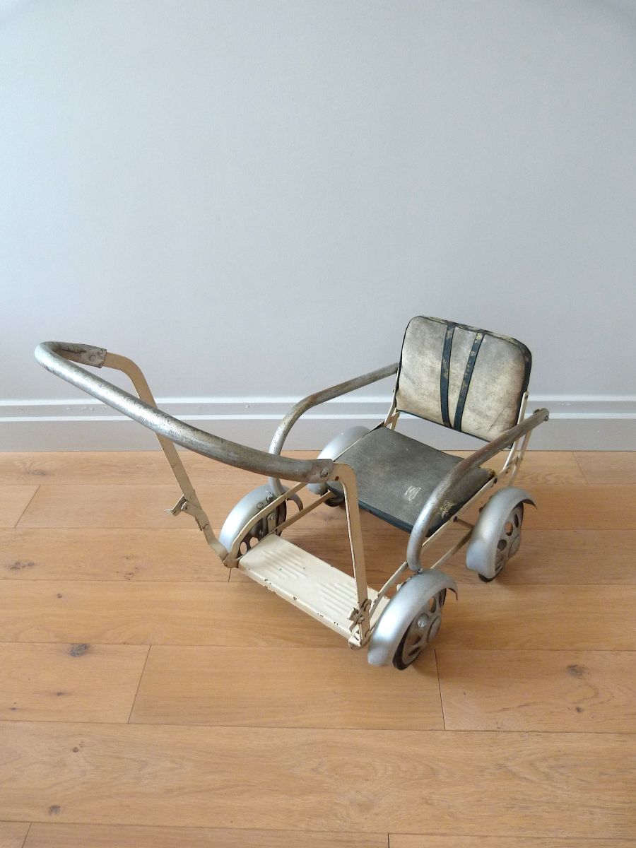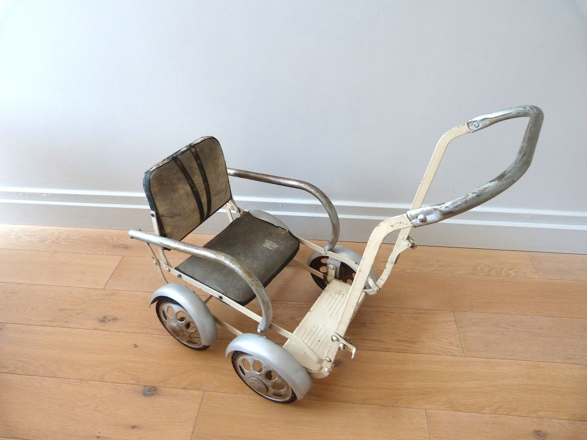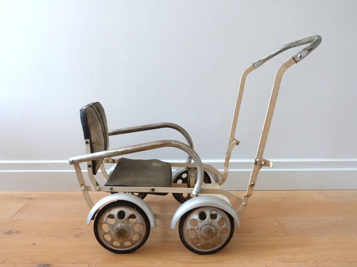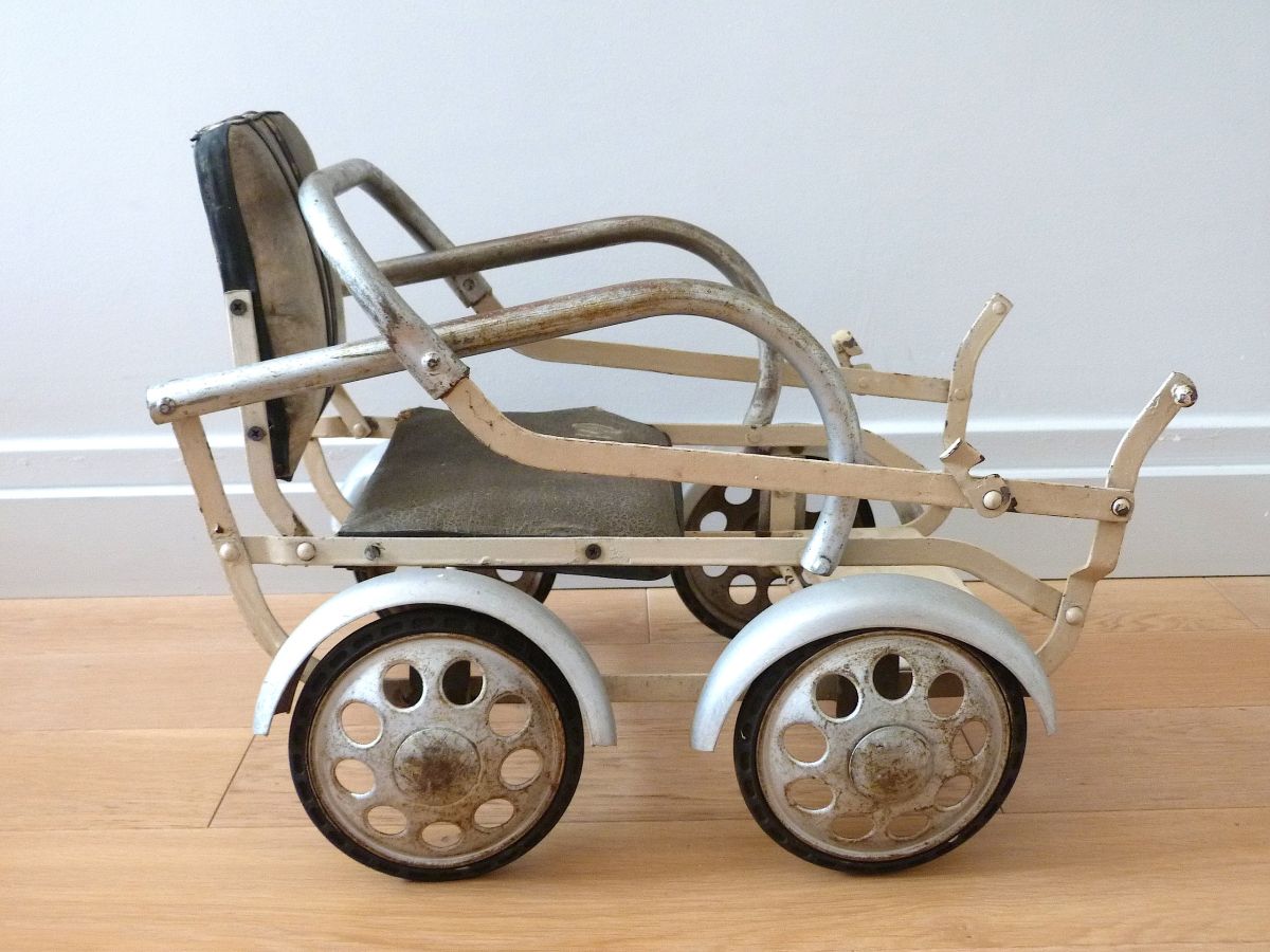 Charmante poussette d’époque des années 50, idéale pour apporter une touche rétro à votre intérieur ou pour compléter une collection.