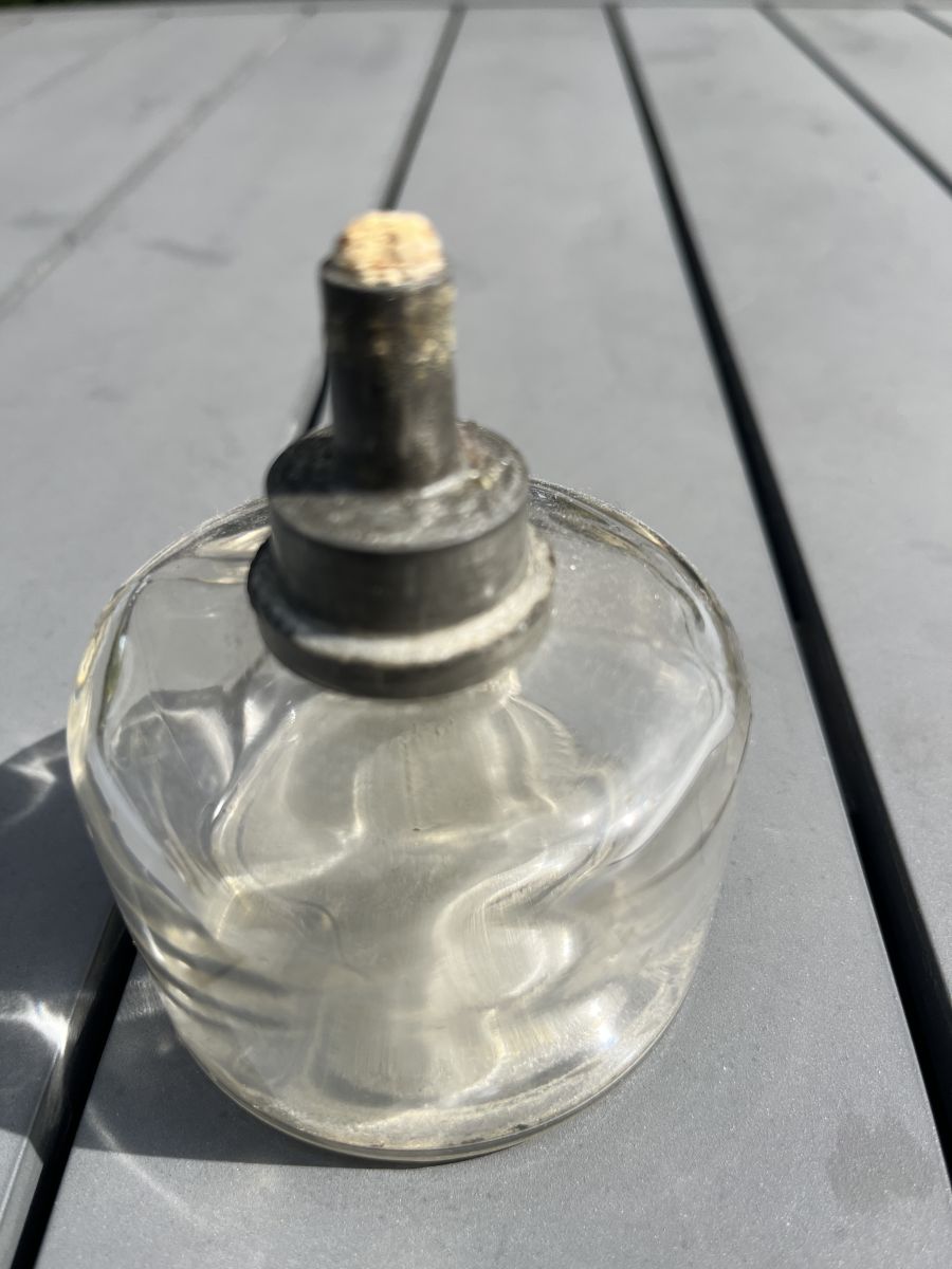 Vintage français : lampe à alcool en verre avec bouchon en é
