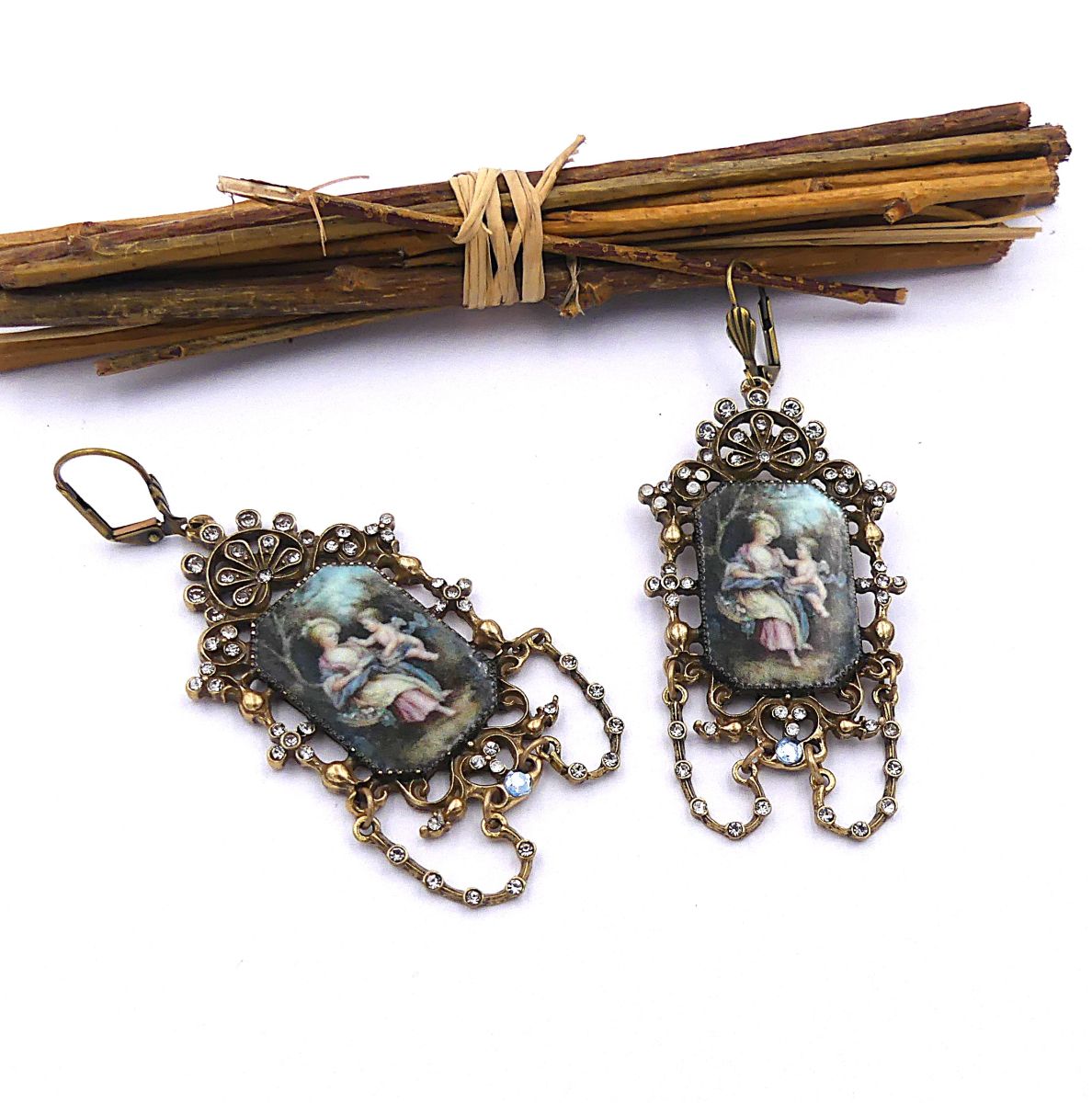 Boucles d'oreilles vintage, rétro, esprit couture, rétro