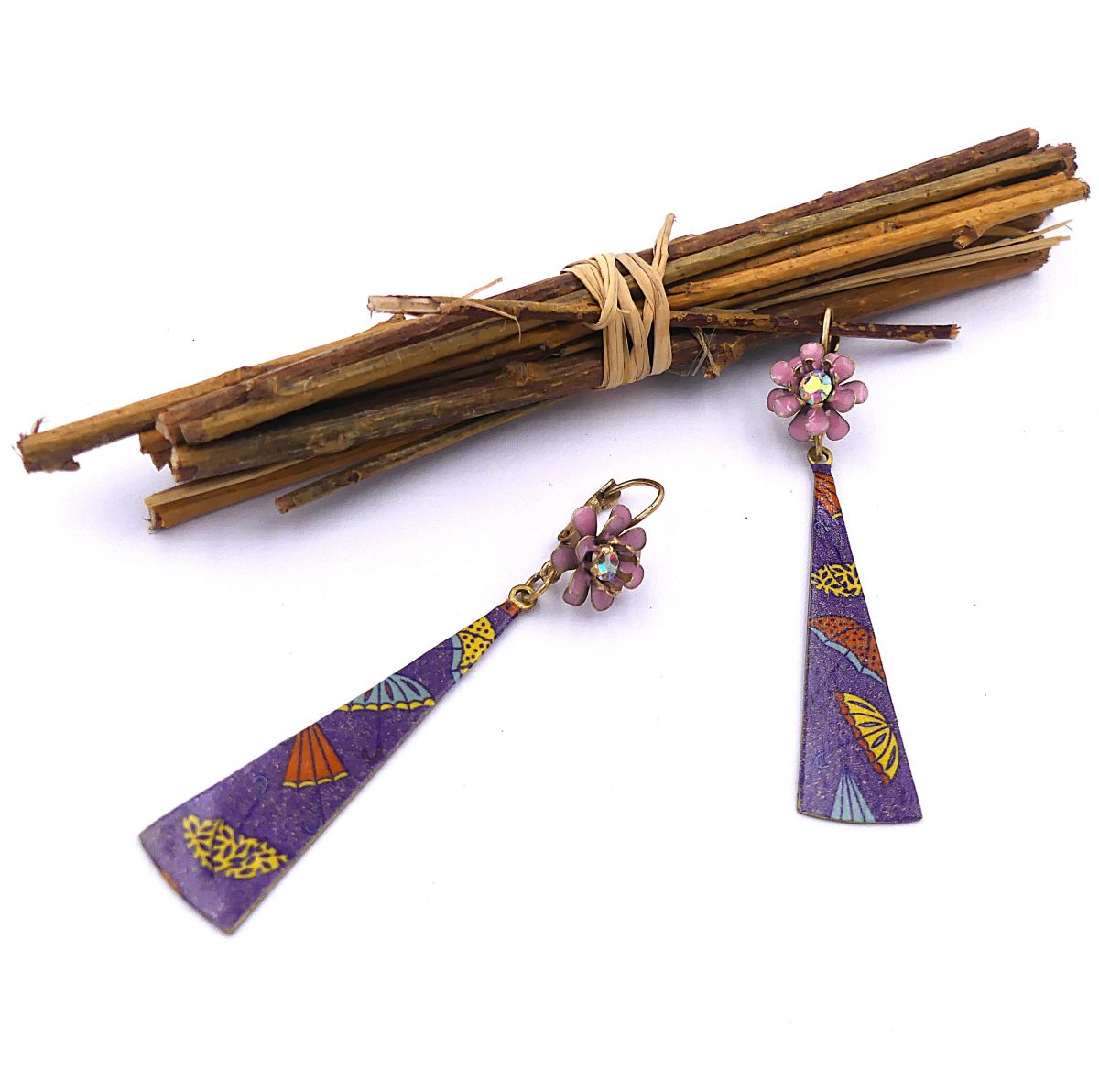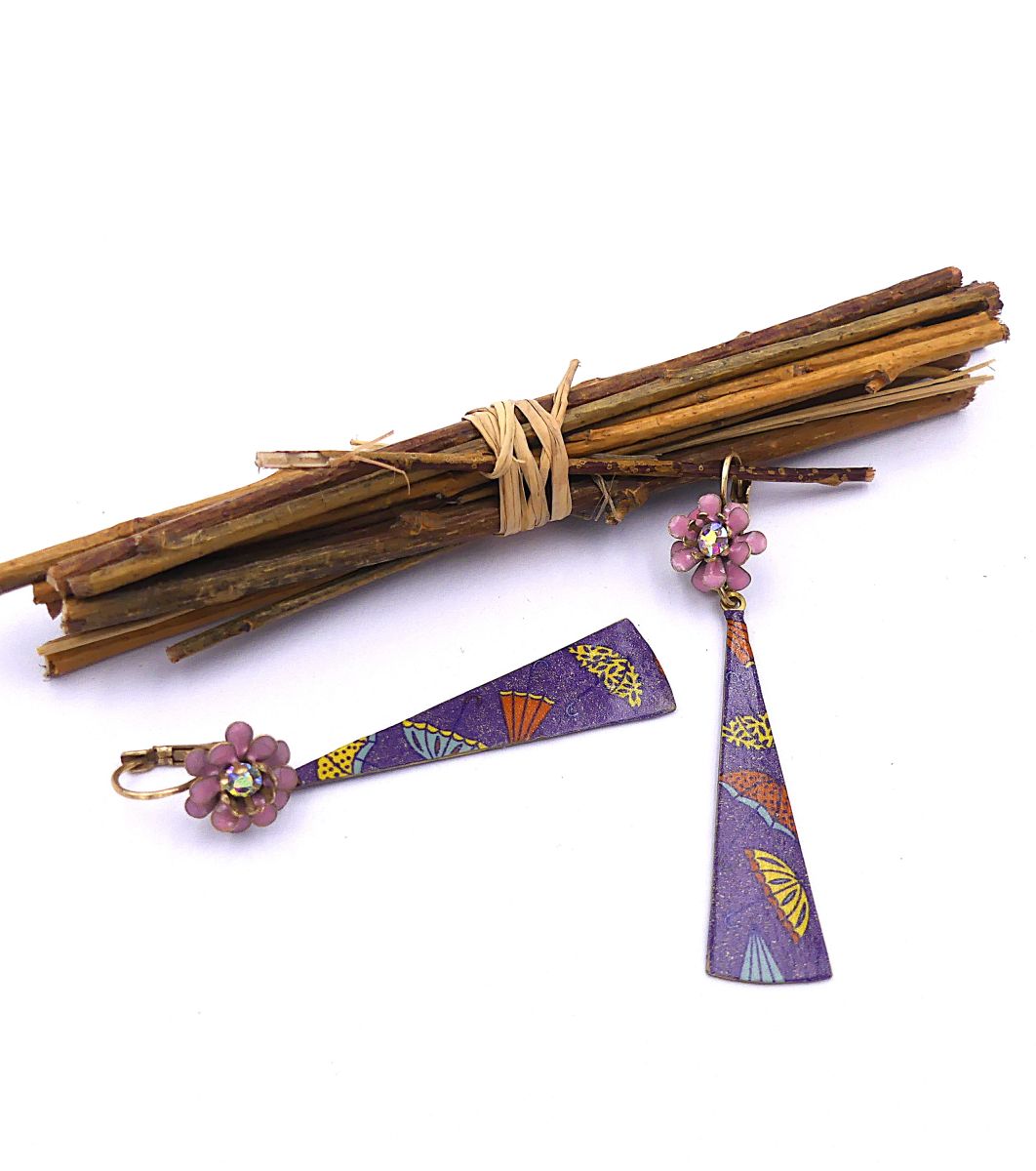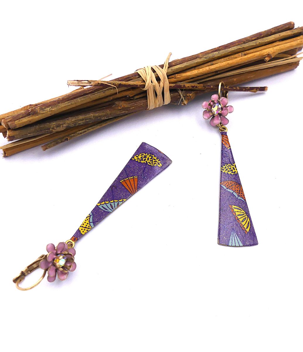 Boucles d'oreilles pendentif customisé et verni, émail
