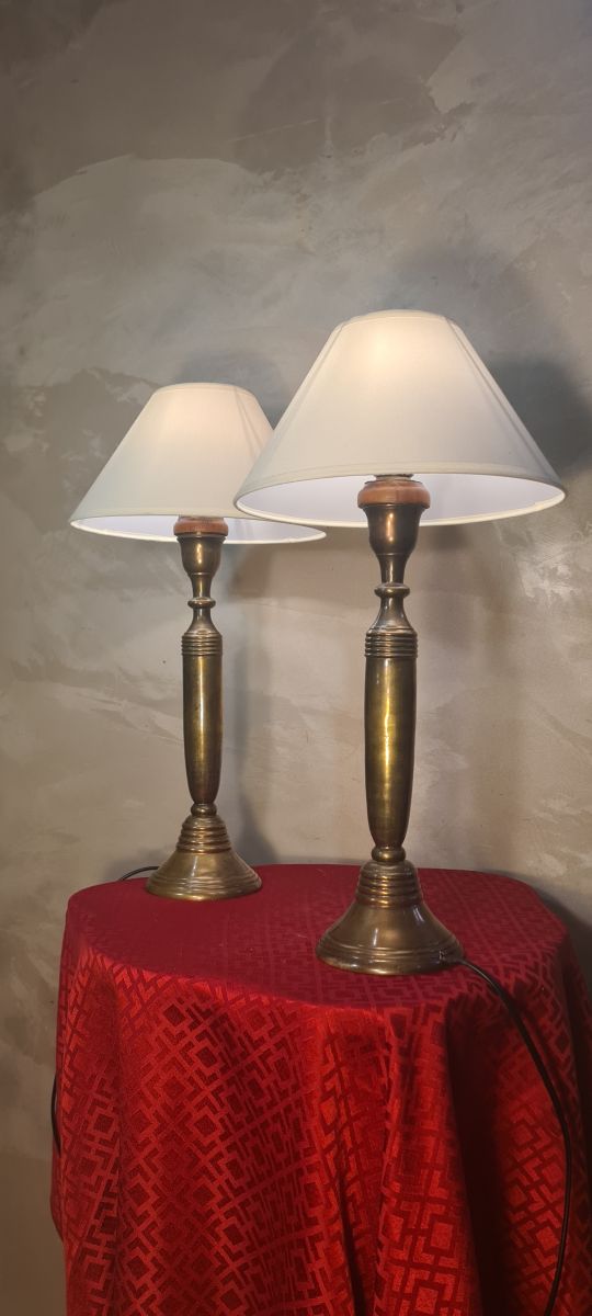 paire de grande lampe laiton massif 1940 , abat jour blan