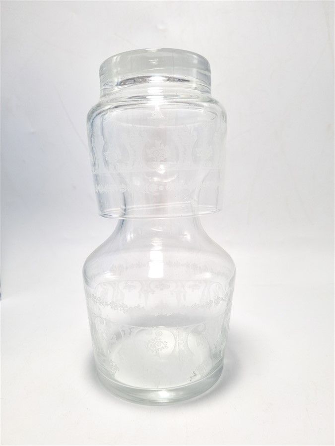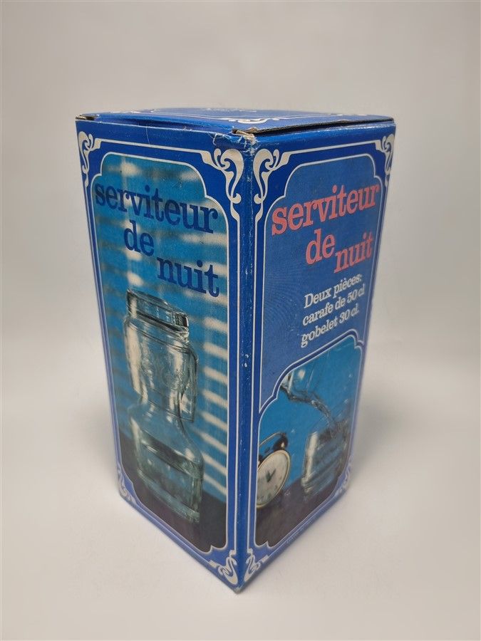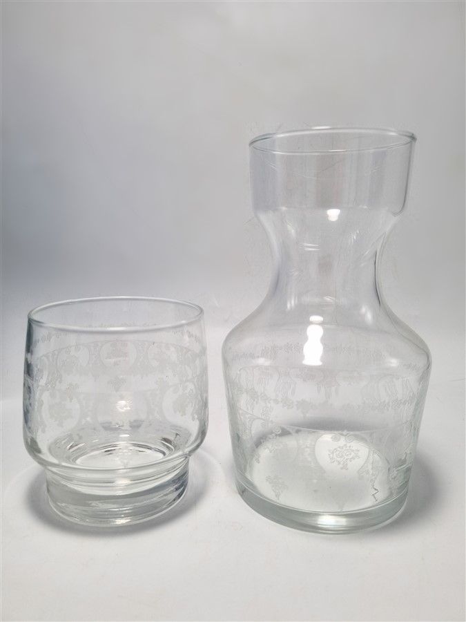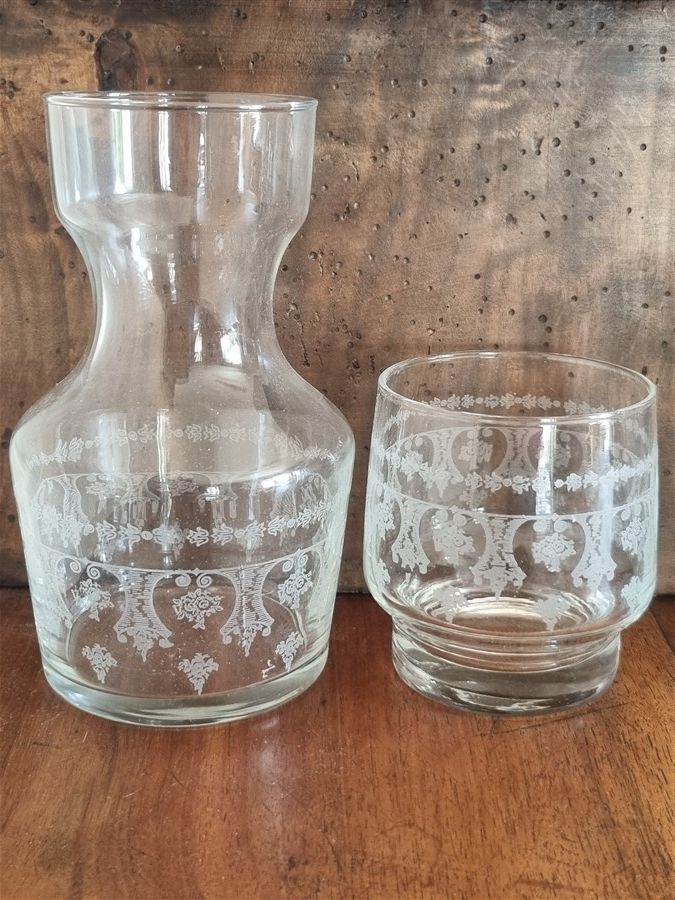Service de chevet, composé d'une carafe et d'un gobelet en verre.