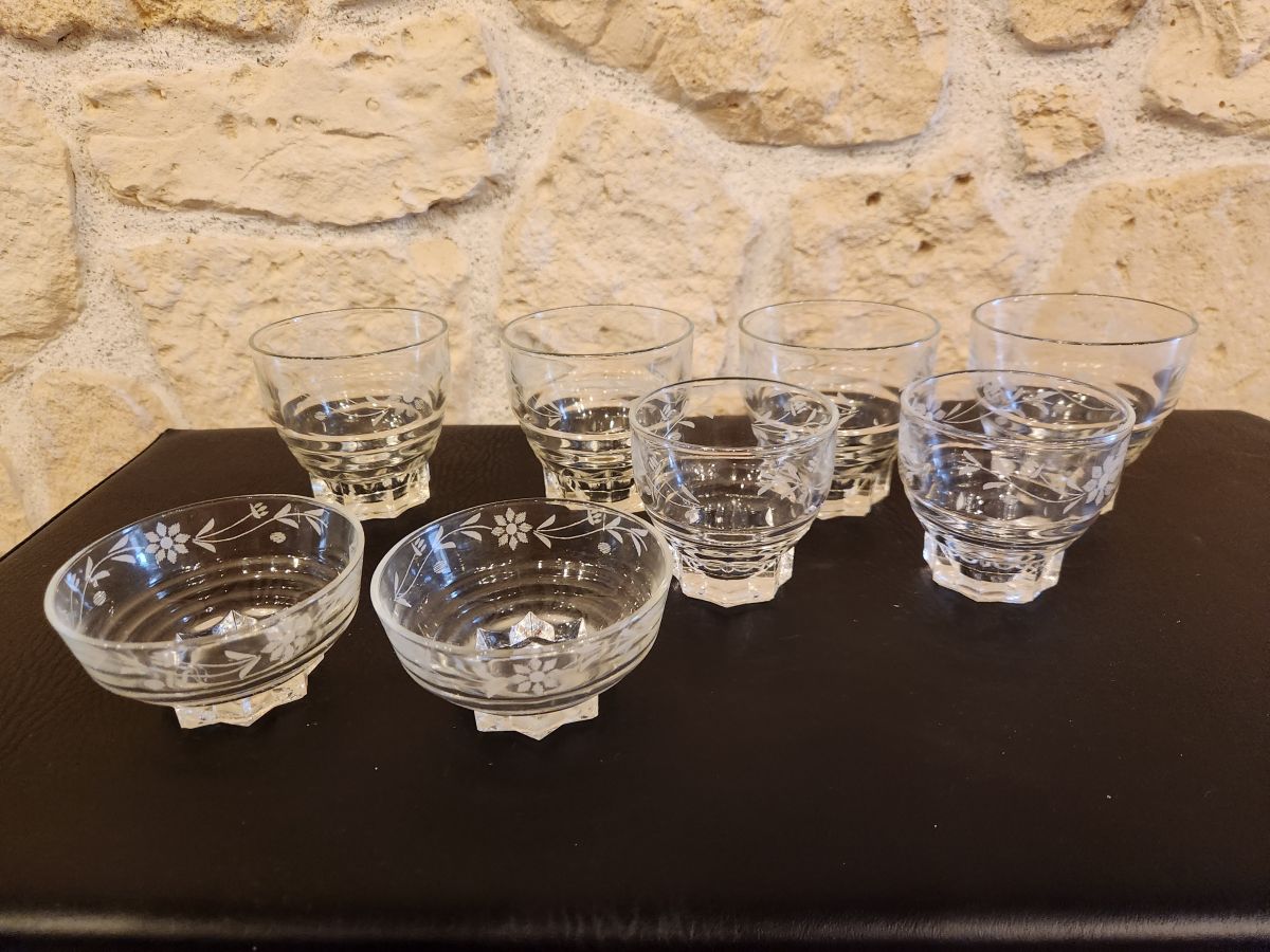 Chaque pièce est ornée de délicats motifs floraux et feuillagés, réalisés avec soin pour sublimer la transparence du verre.