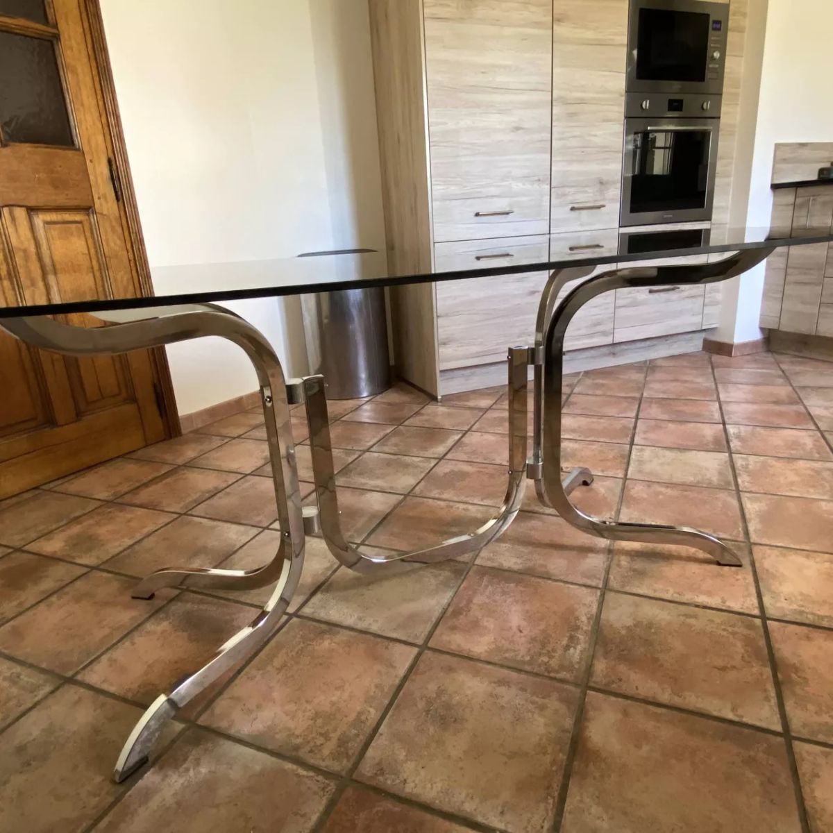 Table Roche Bobois.1970. Acier chromé. 195x95.