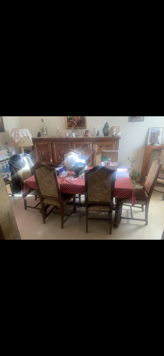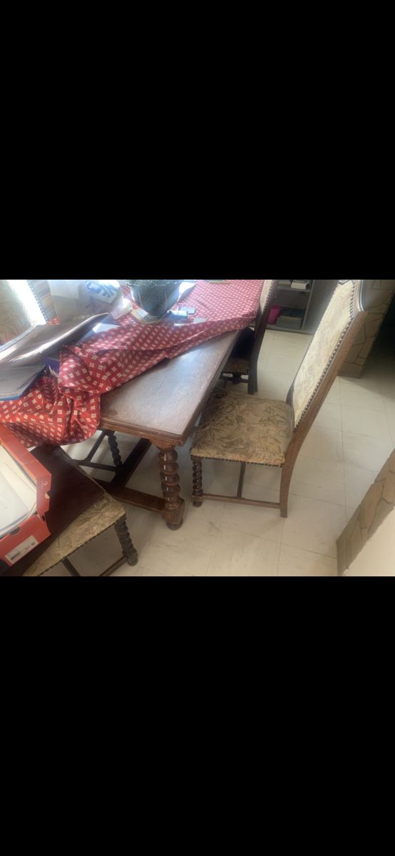 - Une Grande table en bois massif 8 personnes. Très jolis pieds sculptés.