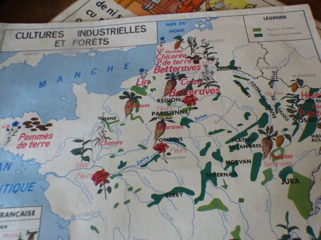 Support scolaire des années 60, deux cartes de France & Europe Occidentale en bon état