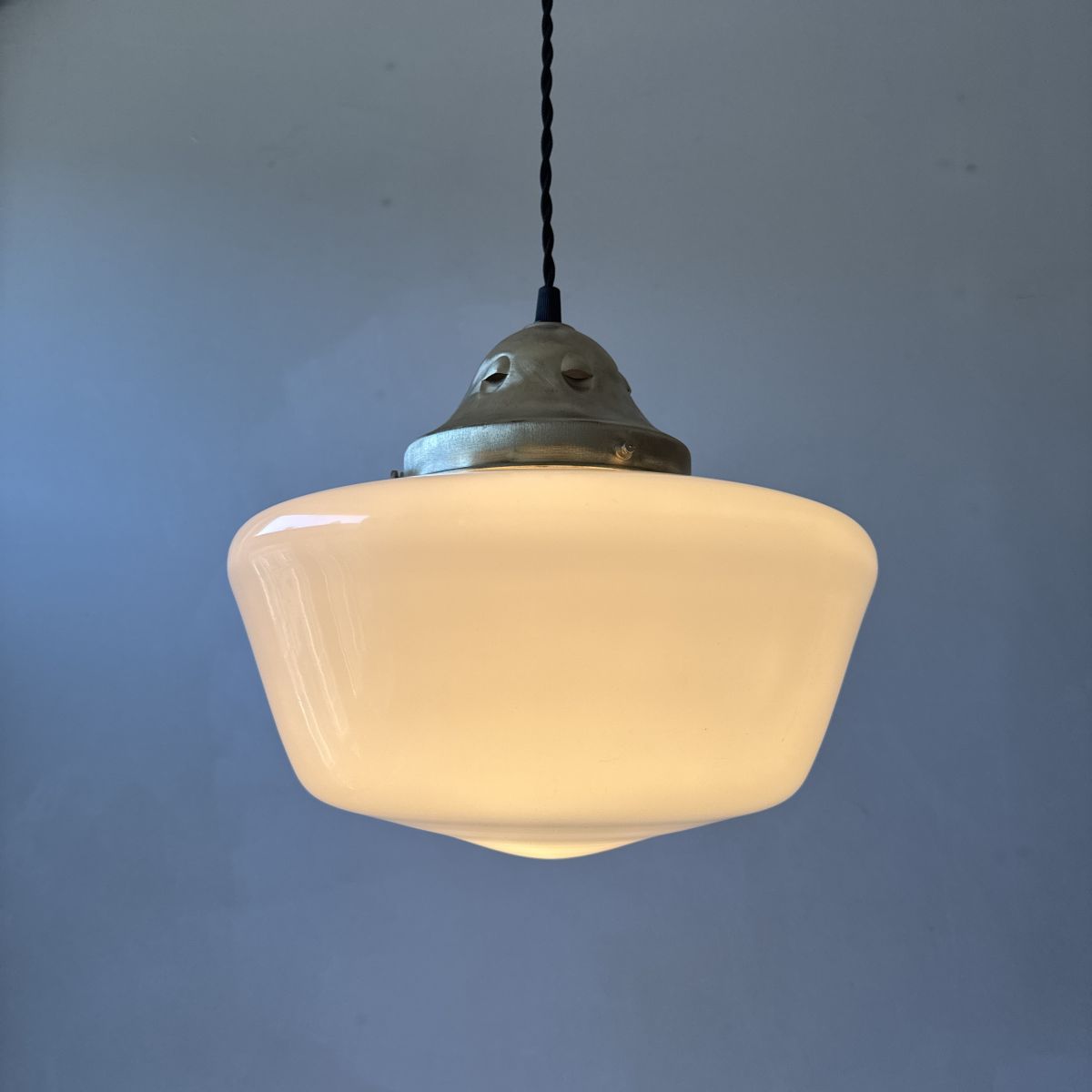 SUSPENSION ANCIENNE EN OPALINE XL 26 CM VINTAGE