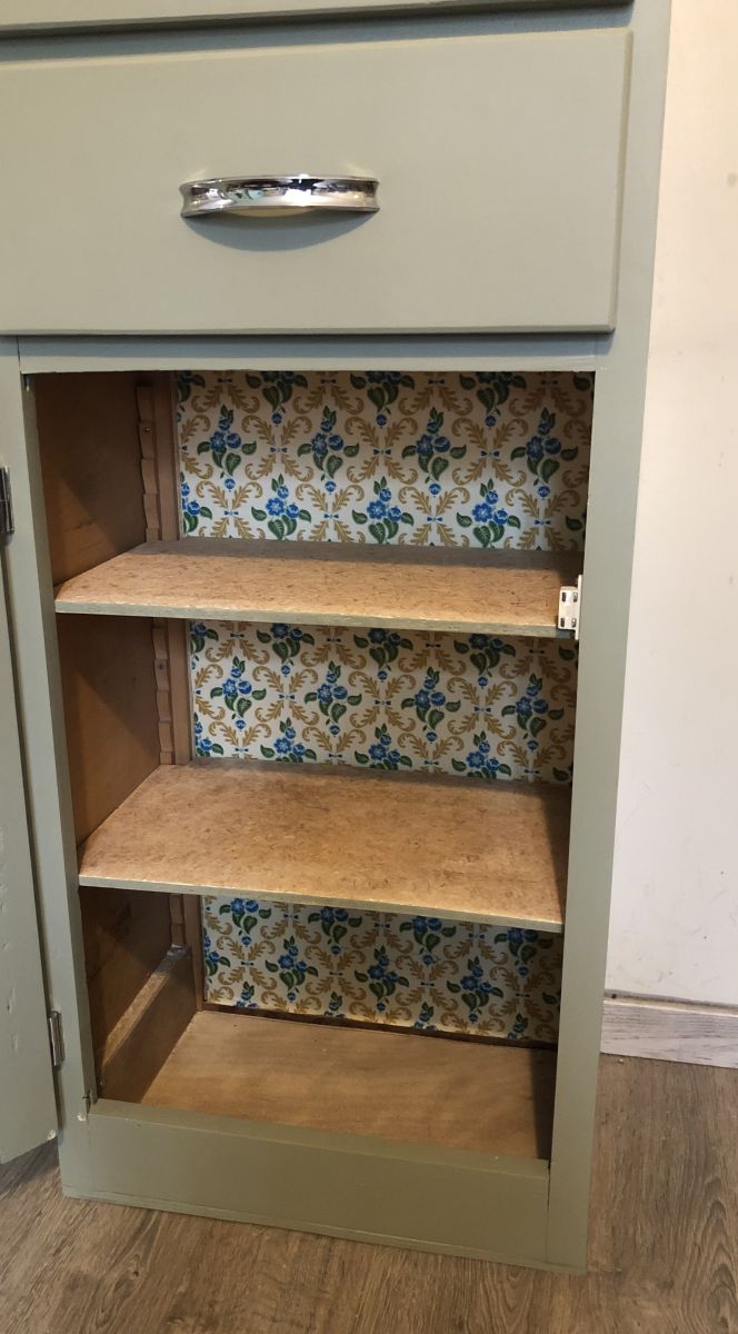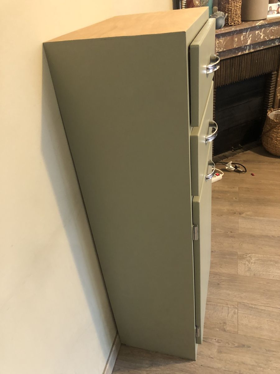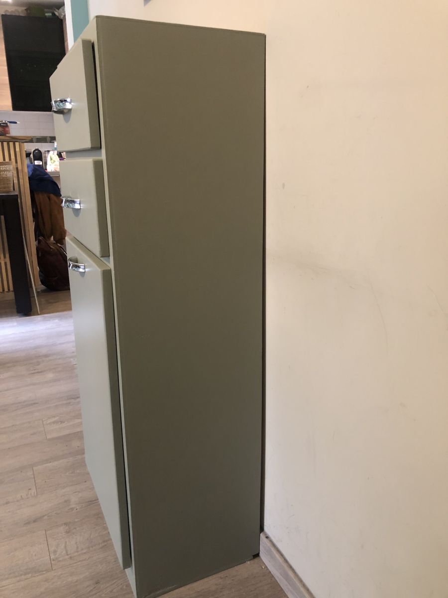 Meuble rétro entièrement en bois , de couleur vert amande.
