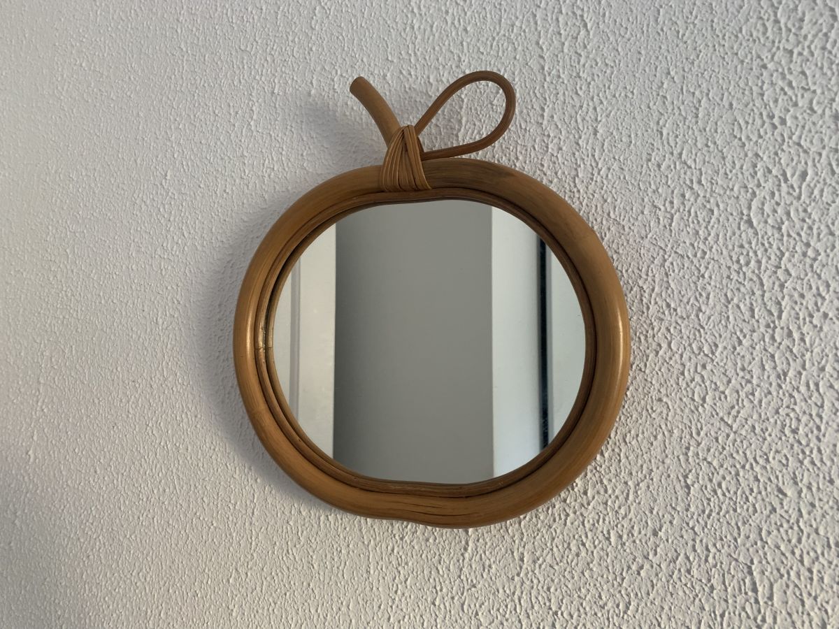 Miroir vintage 1960 pomme rotin osier bambou - 32 x 35 cm