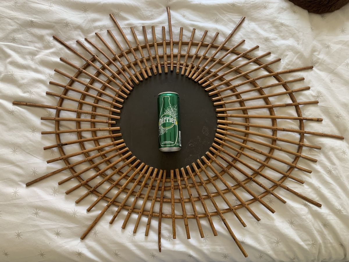 Miroir vintage 1960 soleil rotin style ORTF spirale oeil - 9