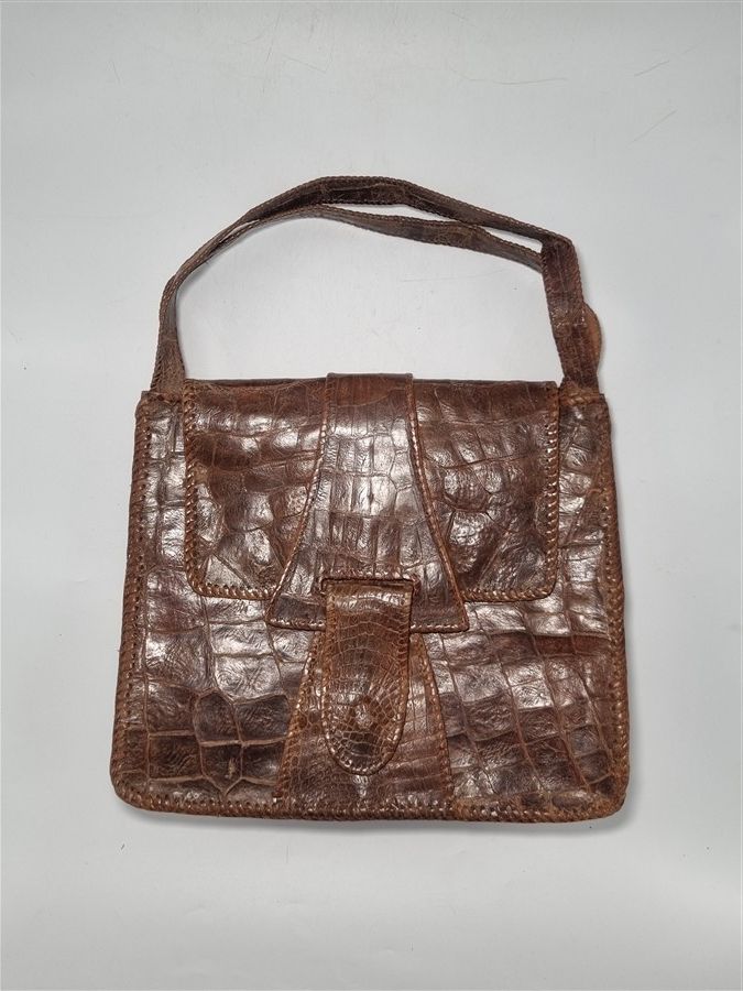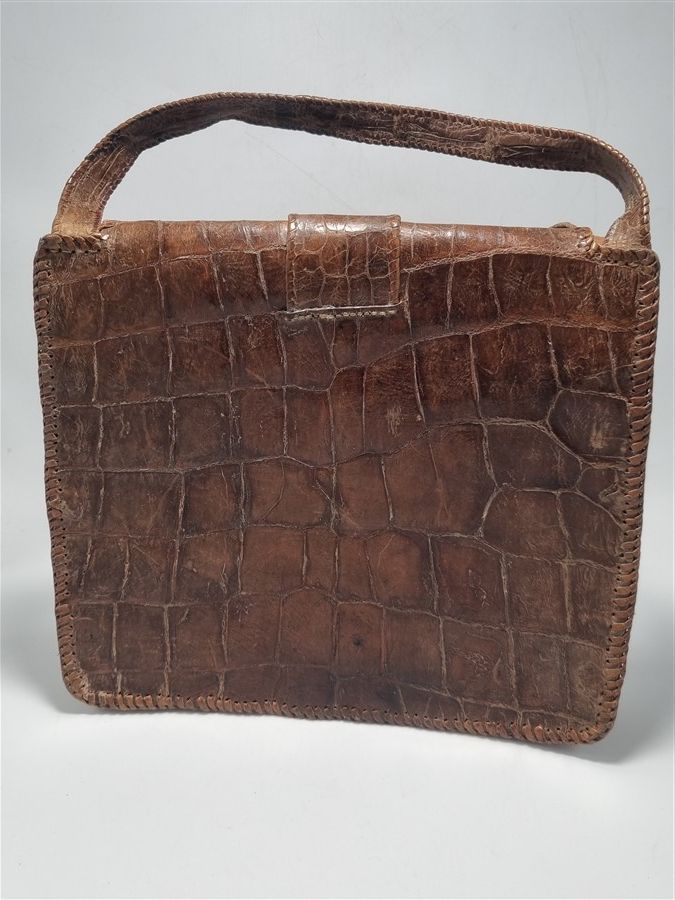 Sac à main vintage en véritable cuir de crocodile.