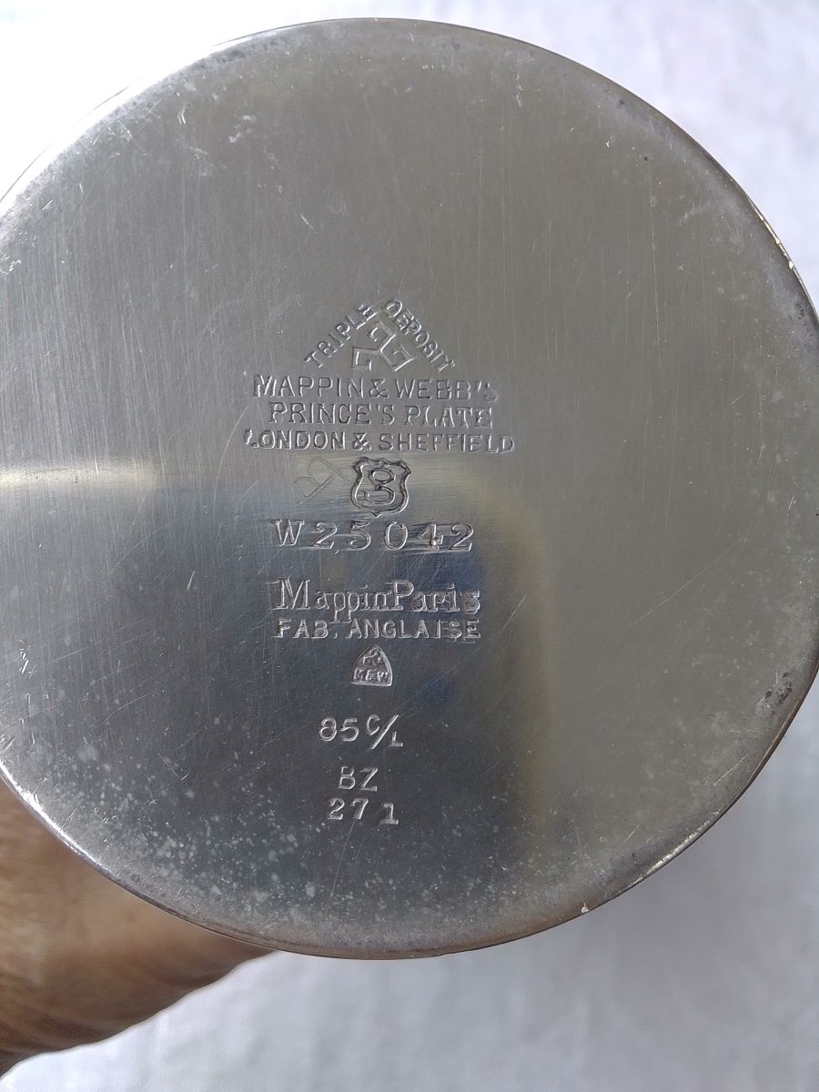 VJoli shaker ancien en métal argenté de la marque anglaise Mappin & Webb Paris