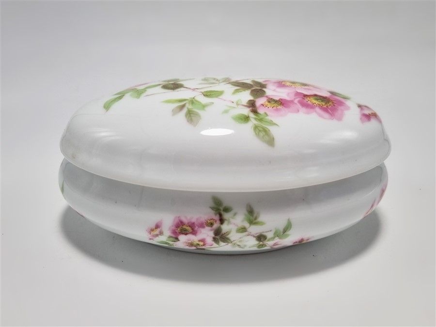 Bonbonnière ou boîte à bijoux en porcelaine au décor floral.