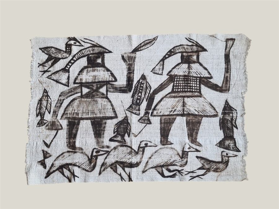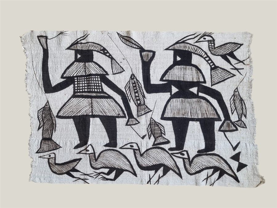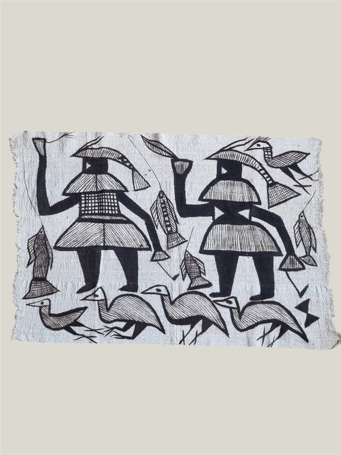 Toile de Korhogo en coton au décor fait main, réalisé à l’aide d’un pigment végétal naturel à base de boue.