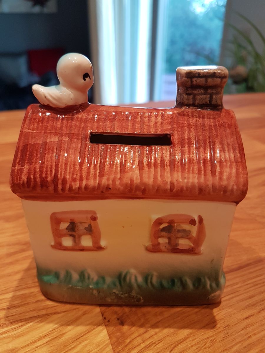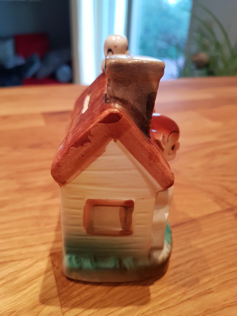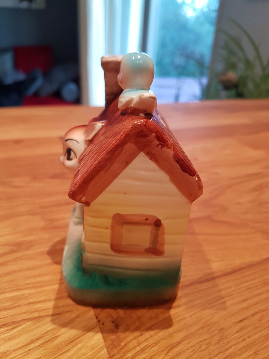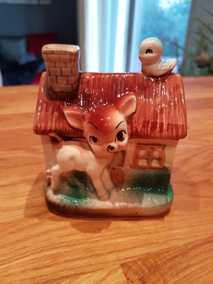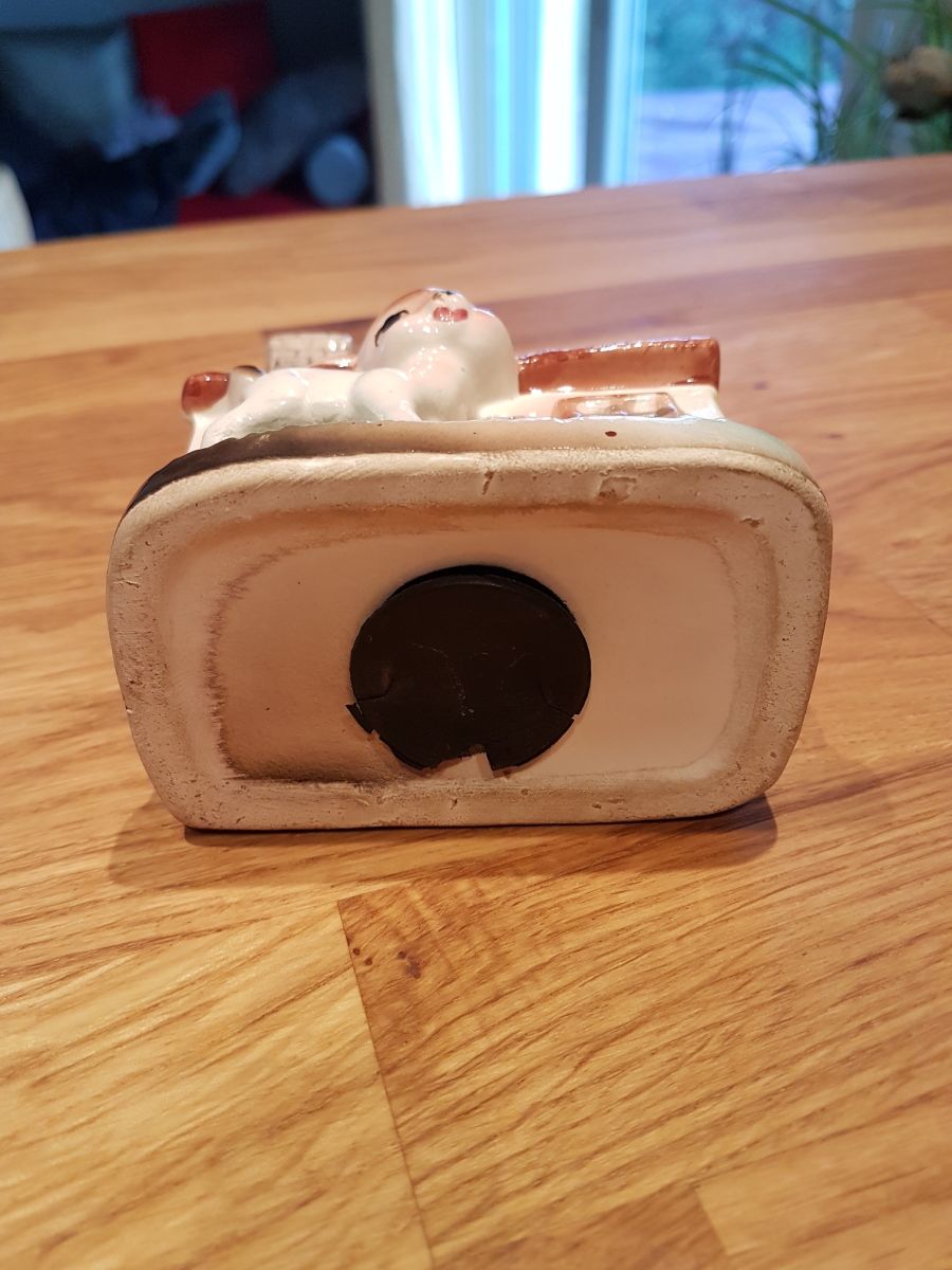 Tirelire en céramique peinte à la main des années 60/70. La céramique est en excellent état, seul le bouchon d'époque pourrait être changé, mais il tient toujours très bien en place.