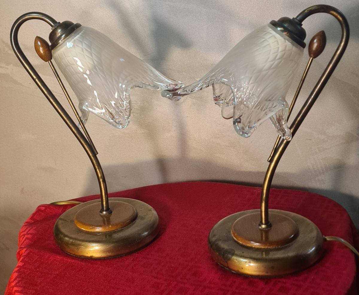 paire lampe de chevet laiton bois et verre 1970 a 80 ,trace d usage normal, photos dispo 32x22