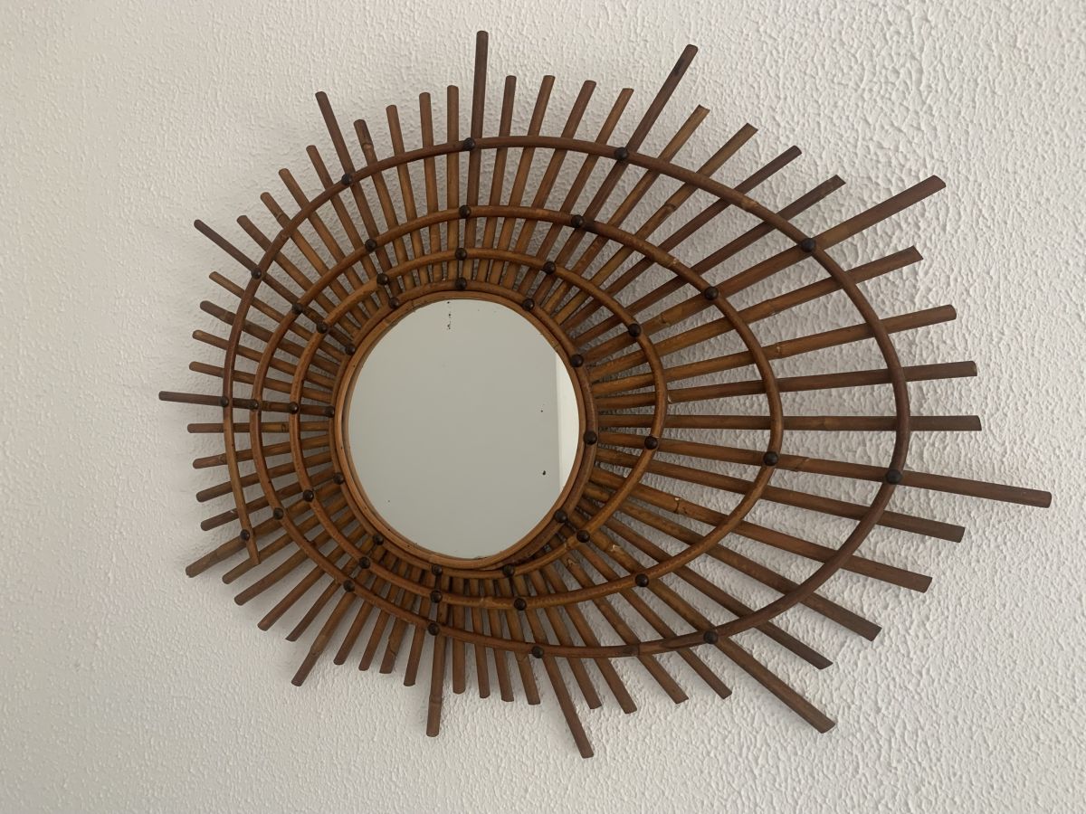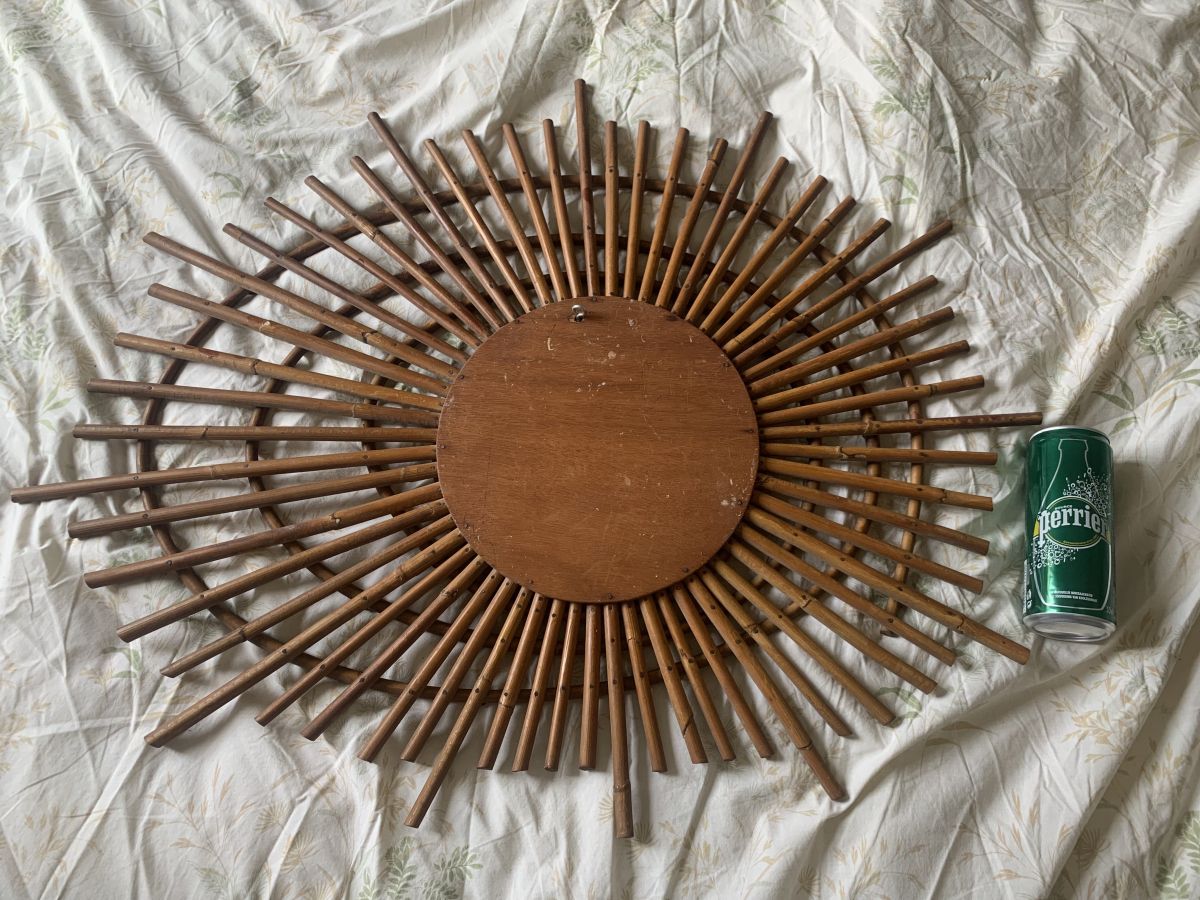 Miroir vintage 1960 soleil rotin style ORTF spirale - 80 x 6