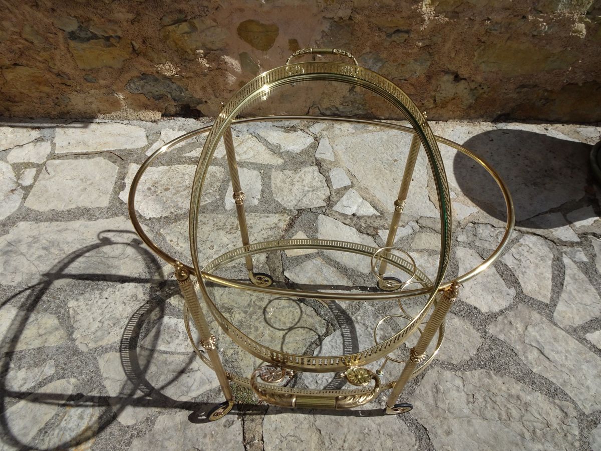Desserte roulante en verre et laiton doré, Maison Baguès, an