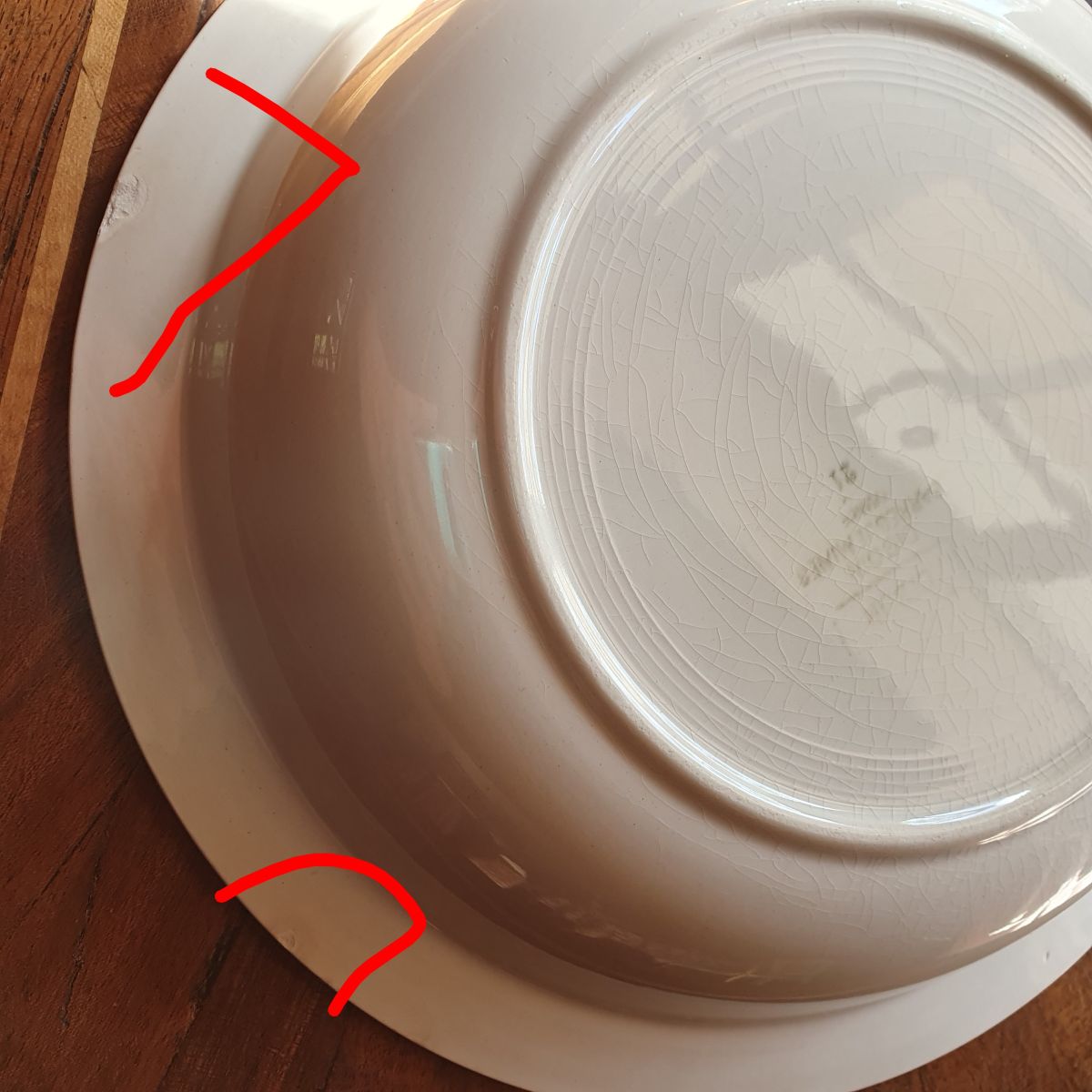 Dessous ce plat il y a 2 petits éclats voir photo marques rouges sinon rien d'autre à signaler