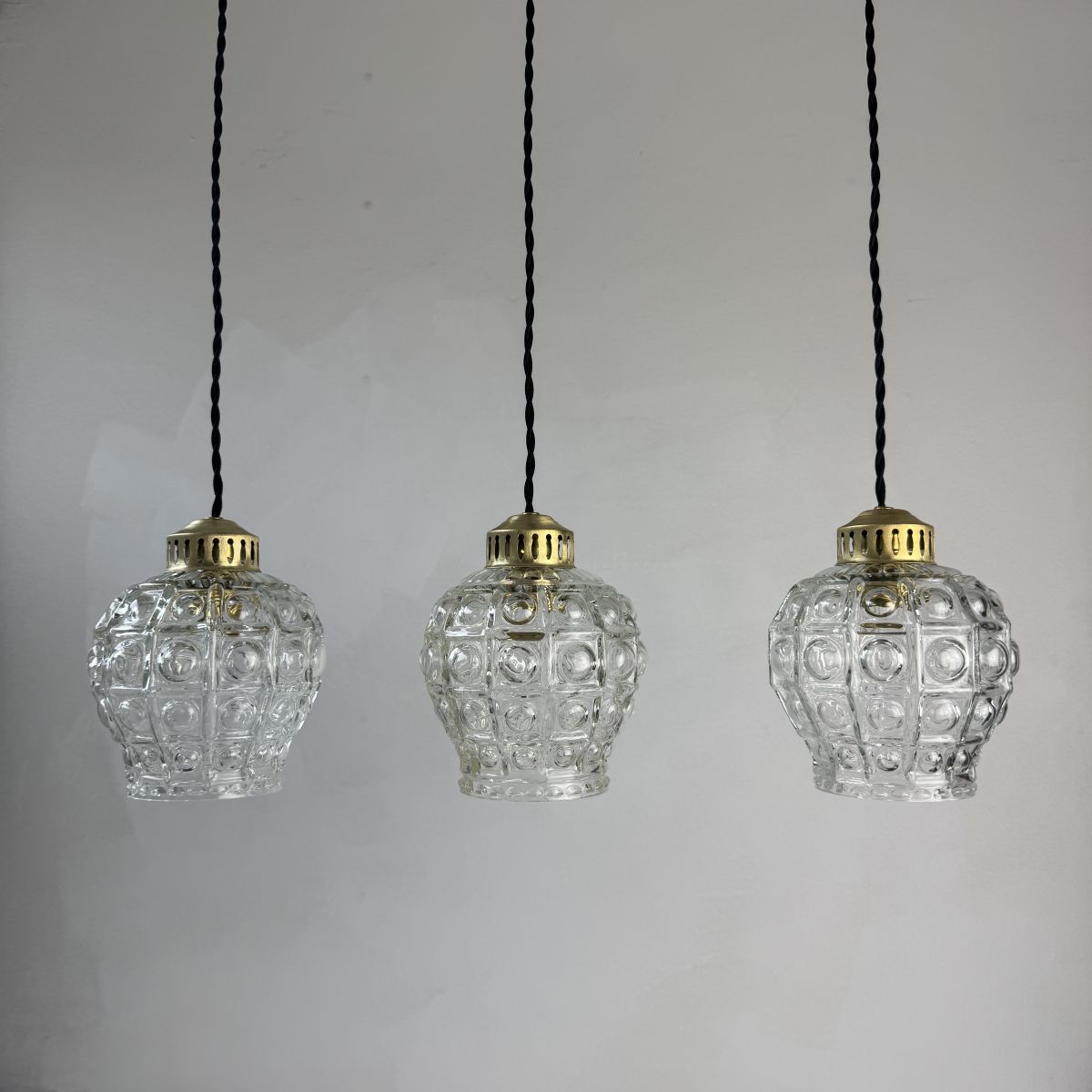 3 suspensions vintage en verre bullé. En bel état général vu leur âge. belle lumière.