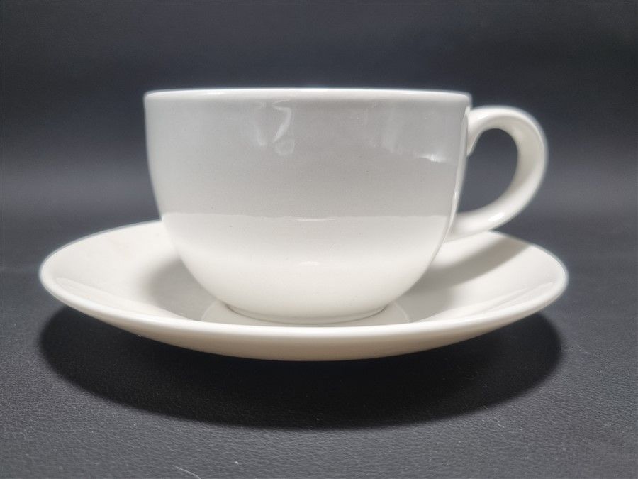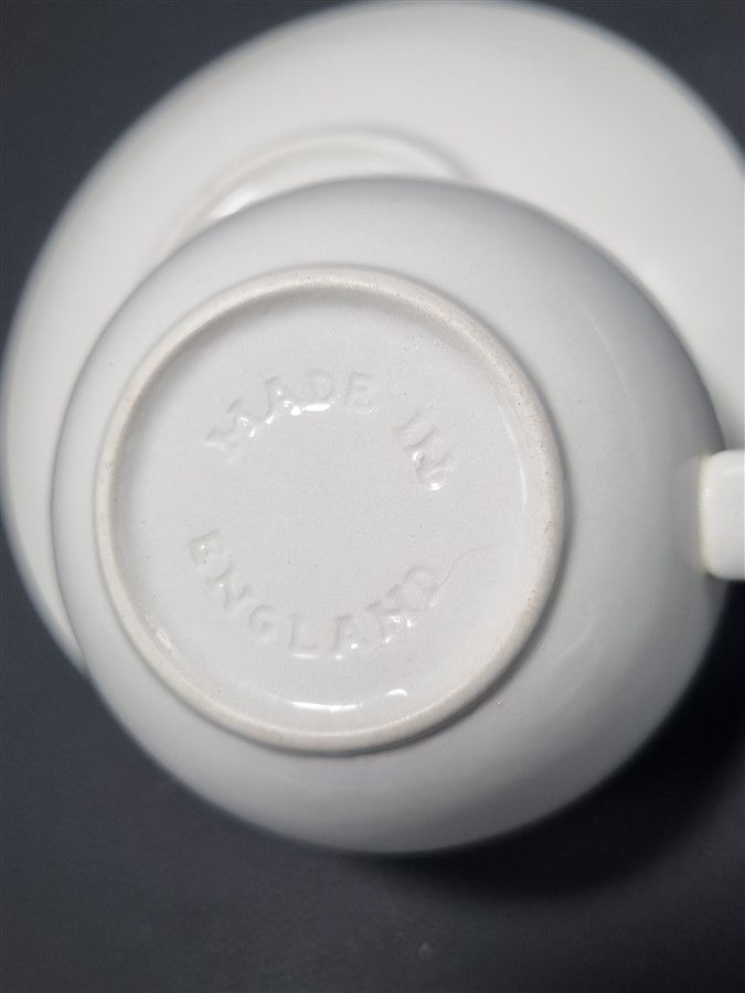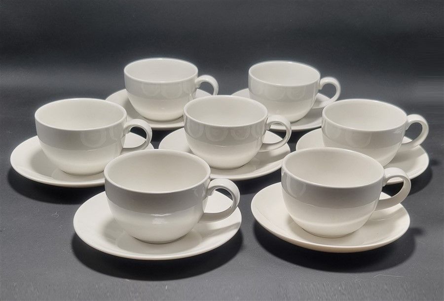 Set de 7 tasses à café et leurs sous-tasse, en porcelaine blanche, made in England.