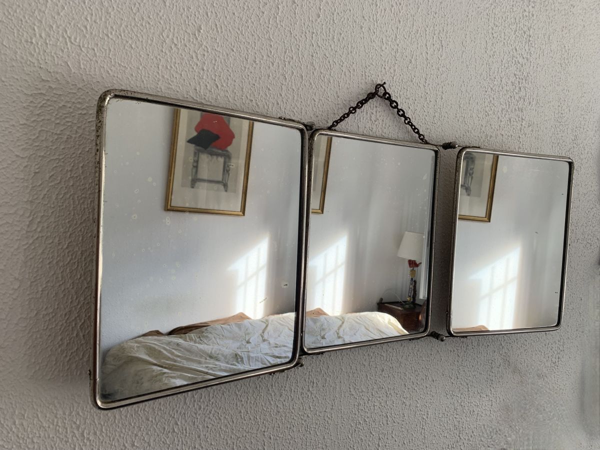 Miroir vintage 1900 triptyque barbier Le Solide Paris Art No