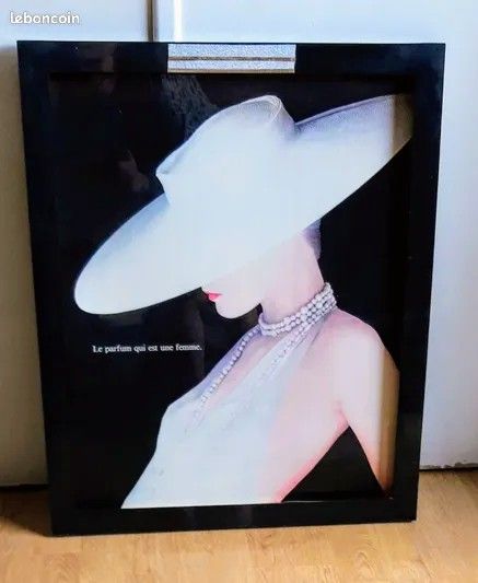 L'image plastifiée est dans un cadre noir sobre et élégant, bordure intérieure dorée sur photo 2.