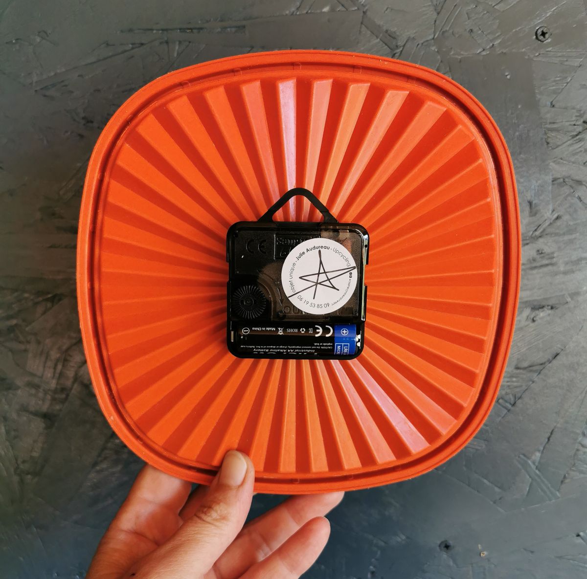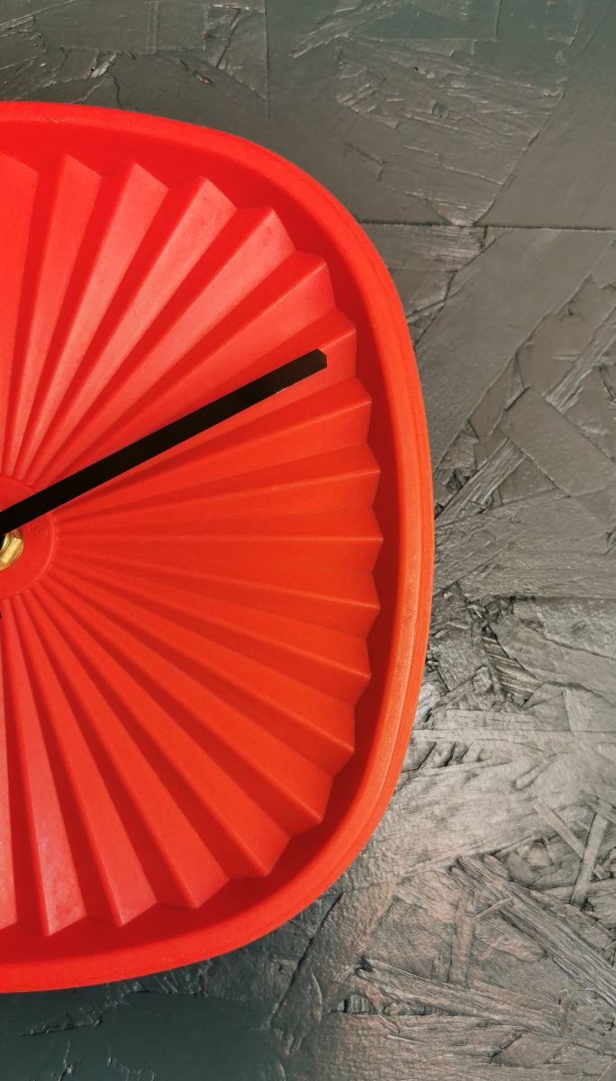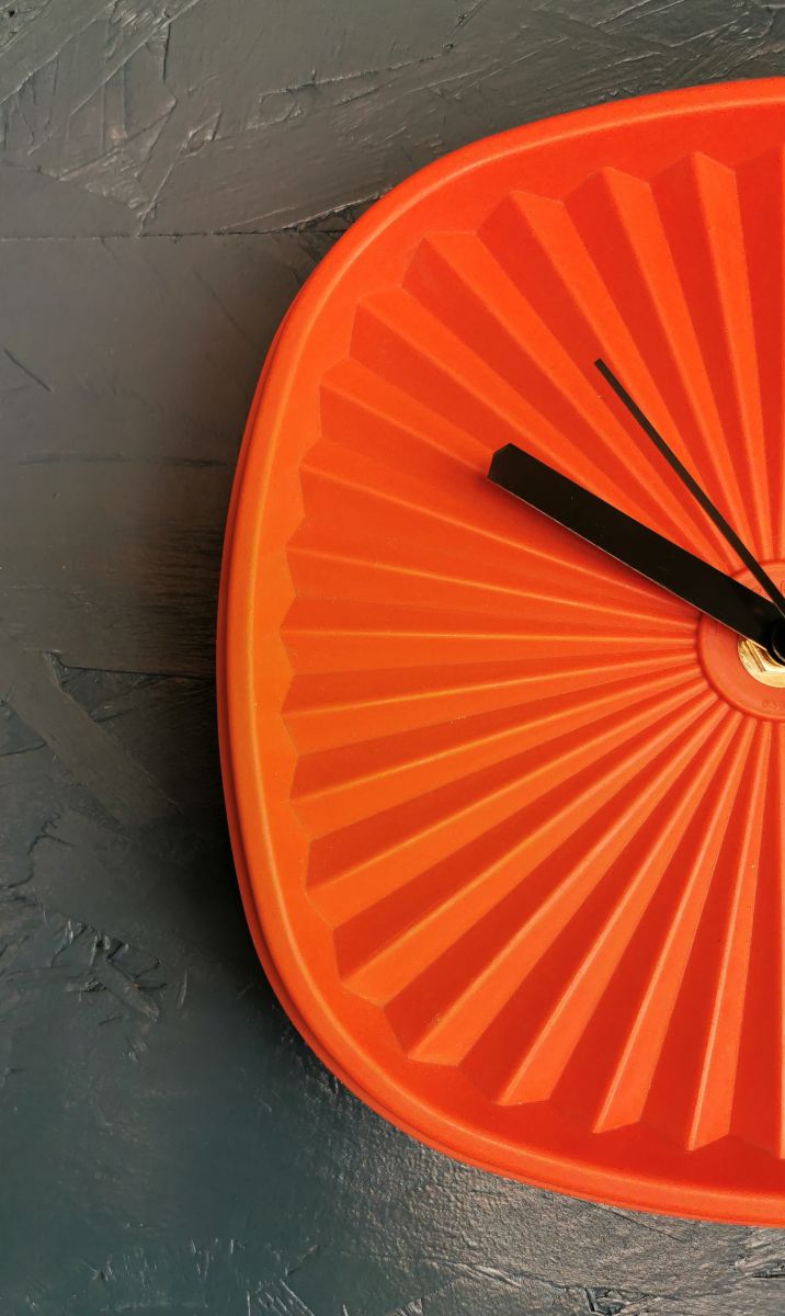 Horloge pendule murale vintage silencieuse couvercle Tupperware Soleil "Orange"