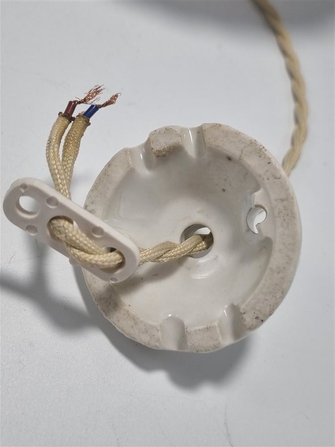 L'ancienne rosace cache-fixation en céramique présente de petits accidents (voir photo.)